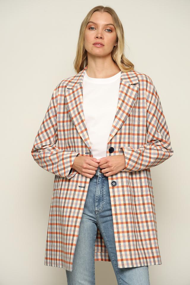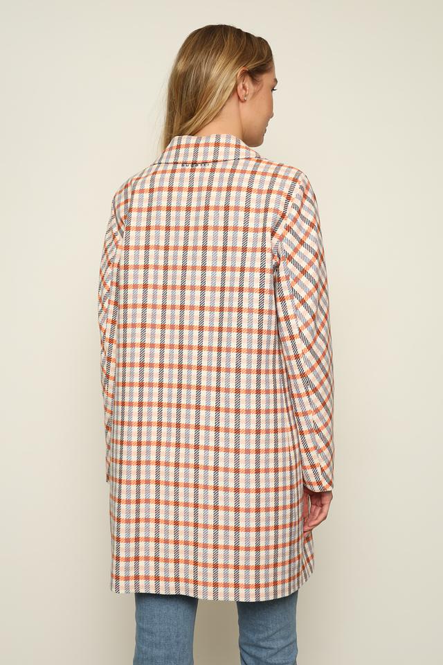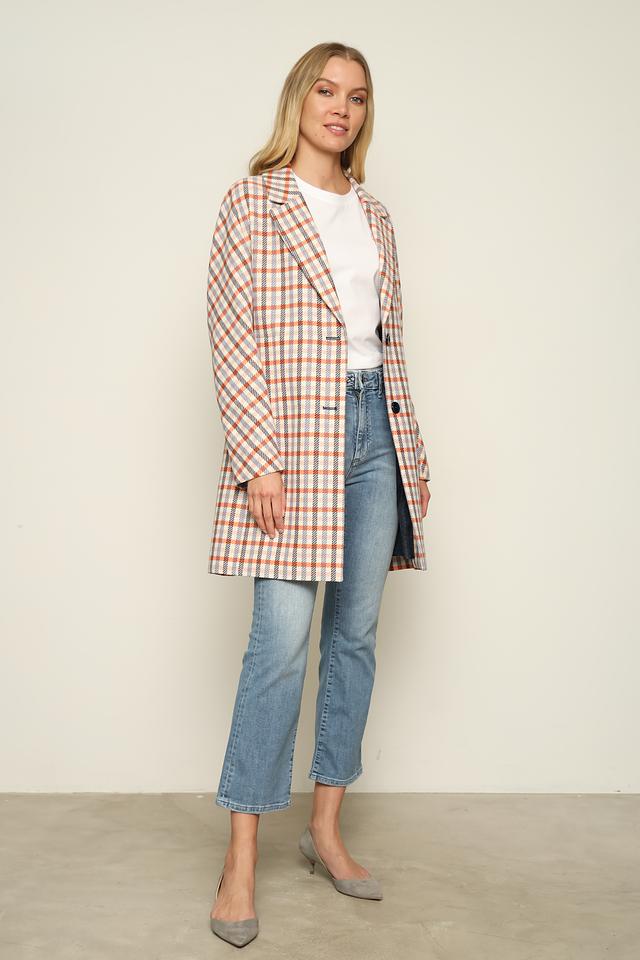 Это стильное пальто от Bugatti станет отличным дополнением к вашему гардеробу. Пальто выполнено в клетчатом дизайне, сочетающем оранжевые, голубые, белые и черные оттенки.