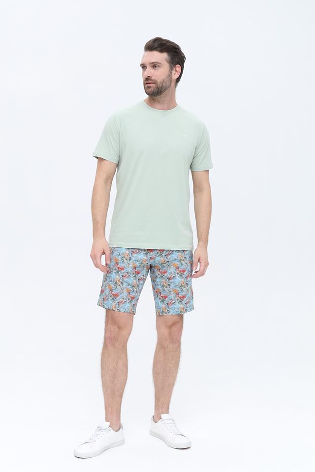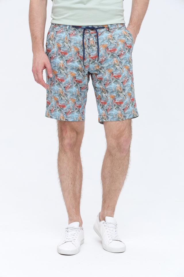 Мужские шорты Bugatti голубого цвета с ярким тропическим принтом – отличный выбор для летнего гардероба. Модель выполнена из лёгкой и дышащей ткани, обеспечивающей комфорт в жаркую погоду. Состав: лен 55%, хлопок 45%