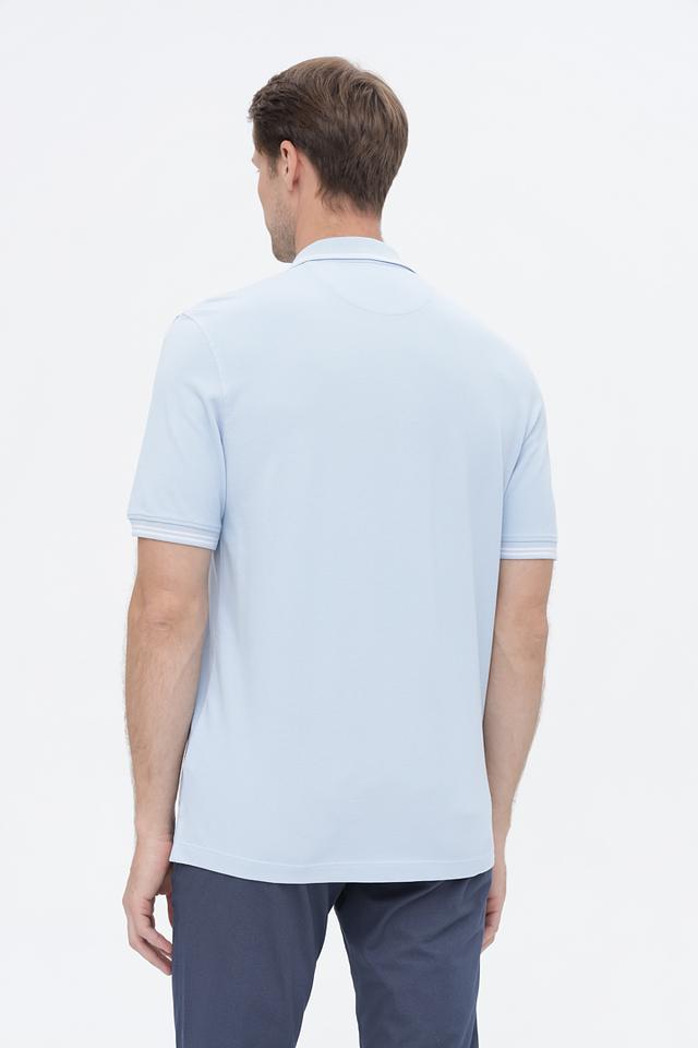 Мужское поло Bugatti голубого цвета выполнено из 100% хлопка, обеспечивая комфорт и воздухопроницаемость. Классический крой и воротник с контрастной окантовкой придают модели элегантный вид. Состав: хлопок 100%