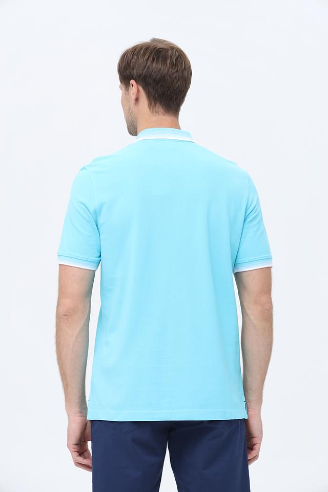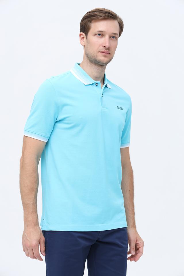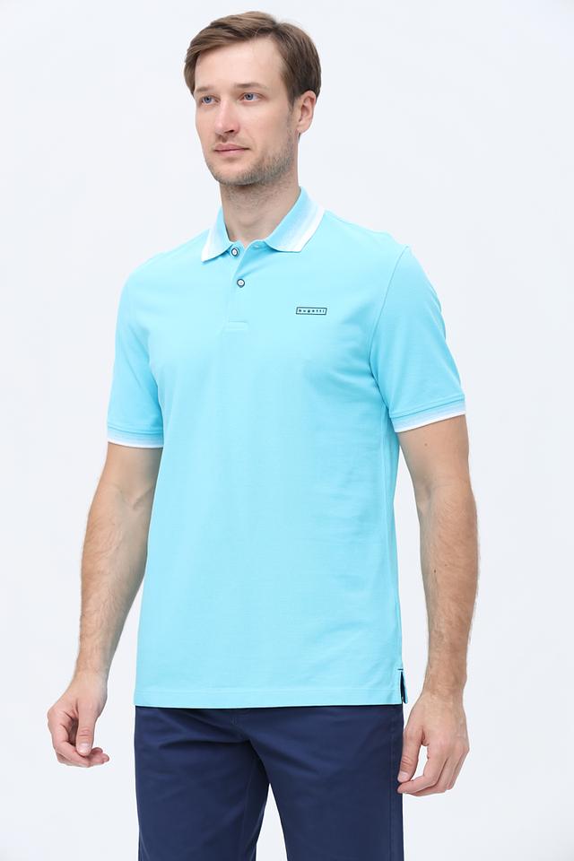 Мужское поло Bugatti голубого цвета с белой отделкой на воротнике и рукавах. Изготовлено из 100% хлопка, обеспечивающего комфорт и воздухопроницаемость. Стильный и универсальный вариант для повседневной носки. Состав: хлопок 100%
