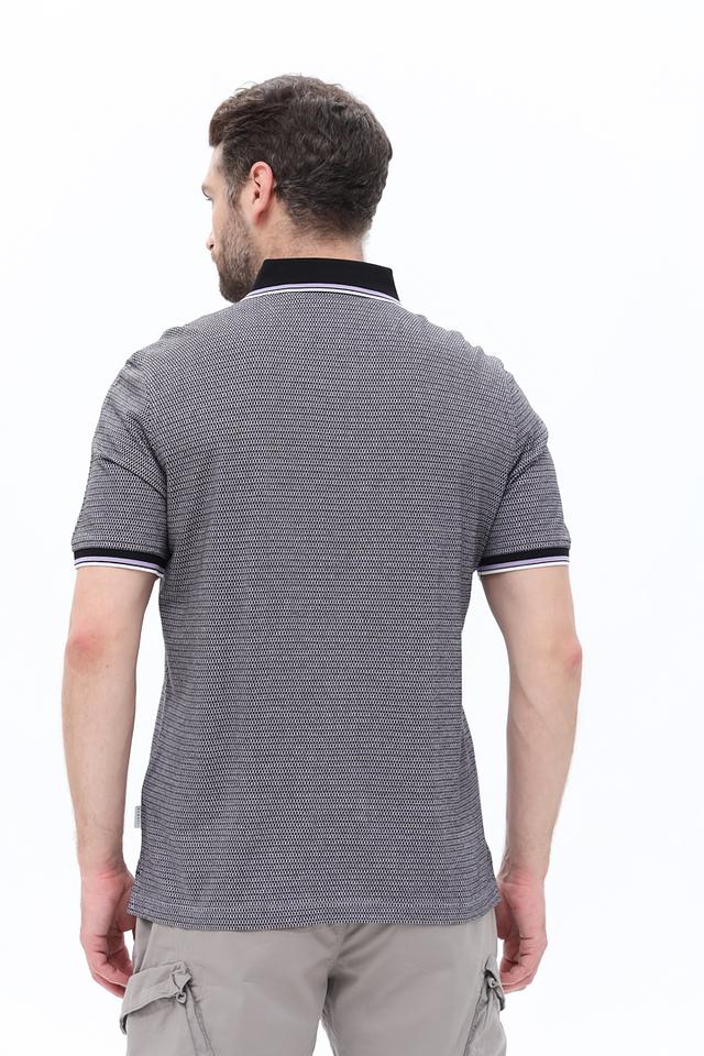 Мужское поло Bugatti серого цвета с мелким геометрическим принтом. Изготовлено из 100% хлопка, имеет короткий рукав и классический крой. Отличное решение для создания стильного и комфортного образа. Состав: хлопок 100%