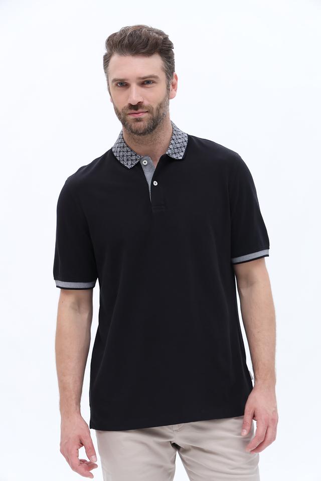 Поло Bugatti с узором на воротнике чёрный