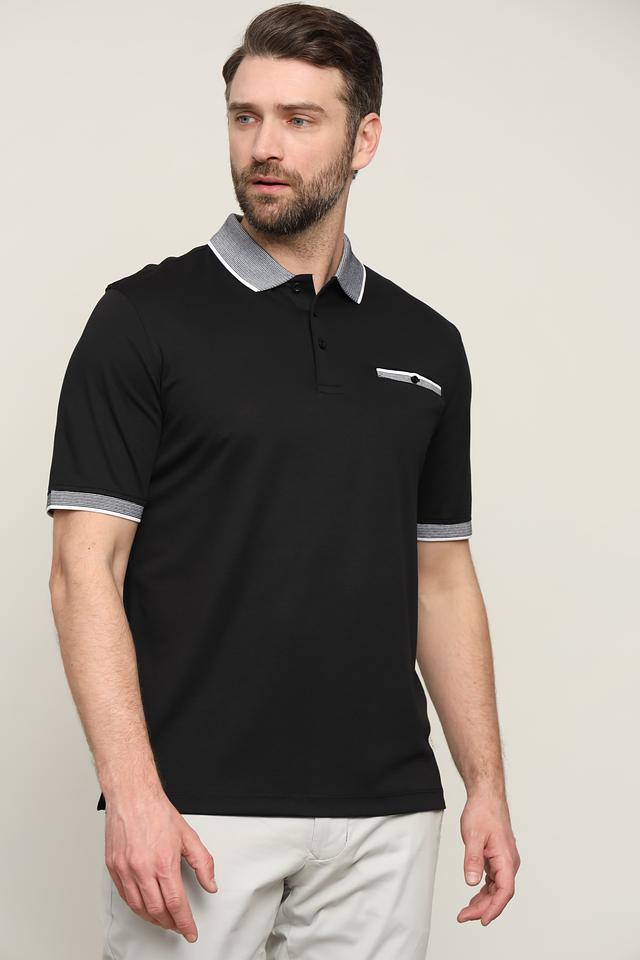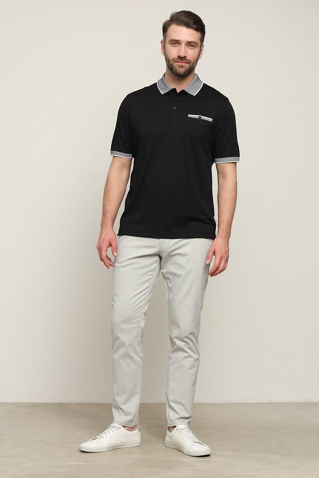 Чёрное поло от Bugatti с контрастной отделкой на воротнике и рукавах. Классический крой и сочетание хлопка с полиэстером обеспечивают комфорт и практичность. Состав: полиэстер 50%, хлопок 50%