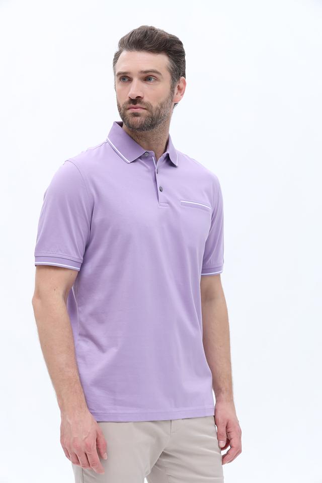 Мужское поло Bugatti лавандового цвета с контрастной полоской на воротнике и рукавах. Изготовлено из 100% хлопка, обеспечивающего комфорт и воздухопроницаемость. Стильное и универсальное решение для повседневного гардероба. Состав: хлопок 100%