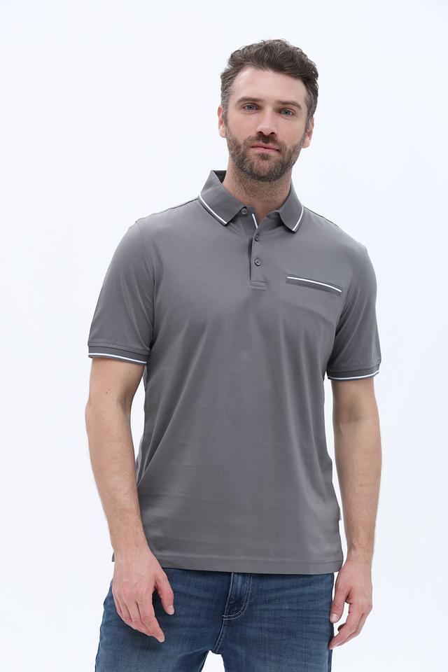 Мужское поло от Bugatti выполнено в сером цвете с аккуратной белой отделкой по краю воротника и рукавов. Эта модель станет отличным дополнением к вашему гардеробу, сочетая в себе комфорт и стиль.