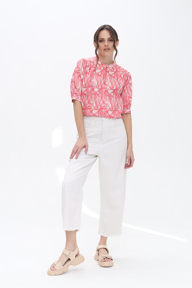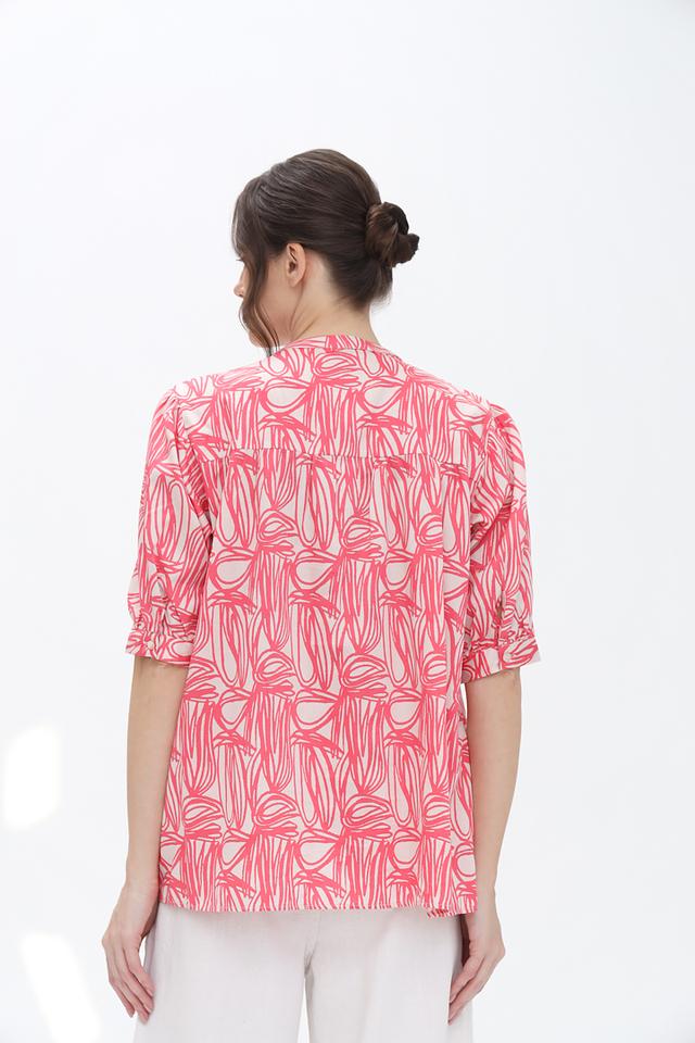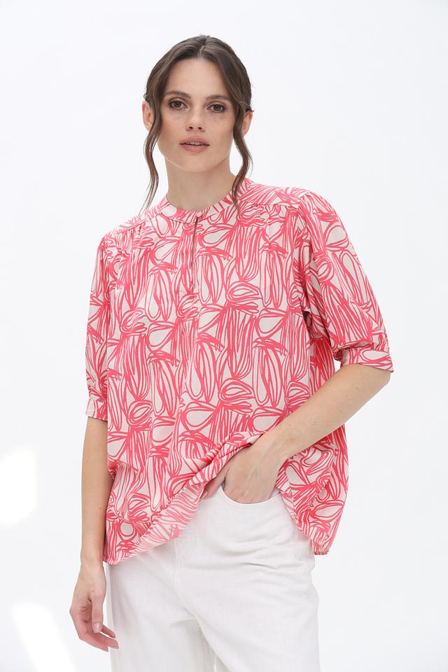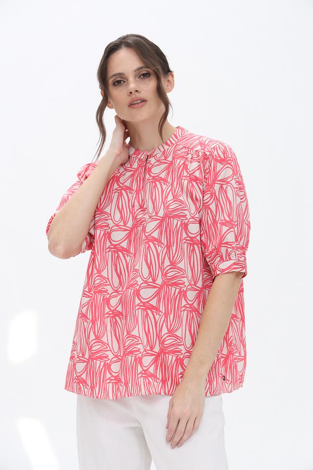 Эта стильная блуза от Bugatti станет прекрасным дополнением к вашему гардеробу. Блуза выполнена в нежном розовом цвете и украшена оригинальным абстрактным принтом, который придает ей изысканность.