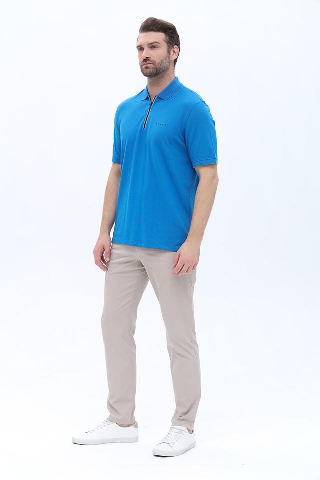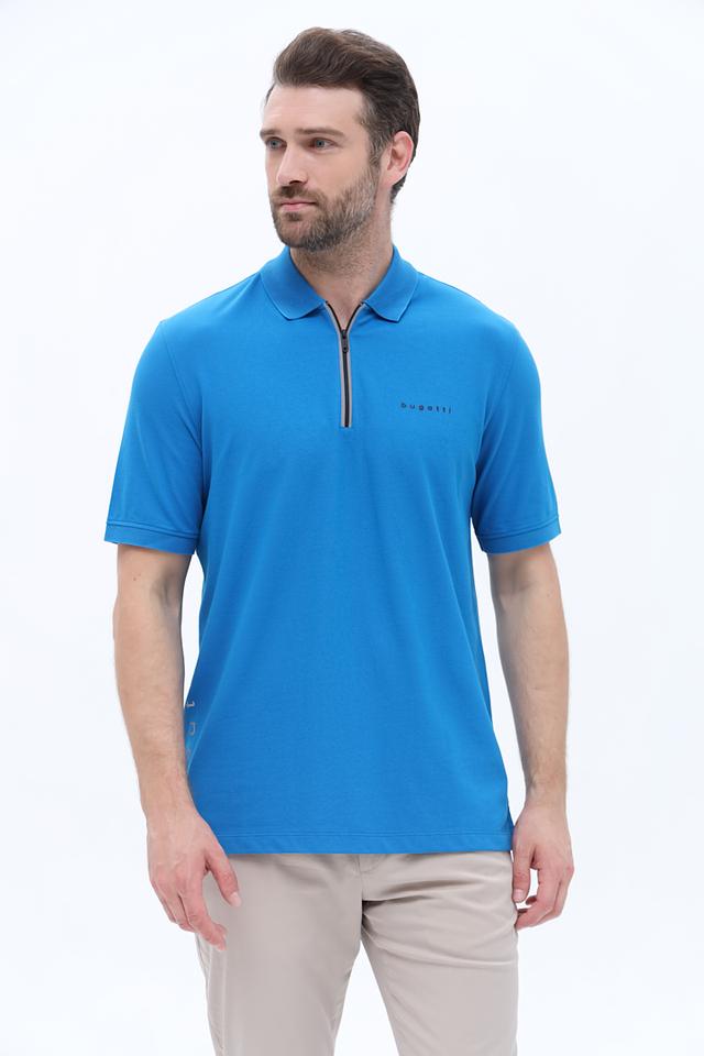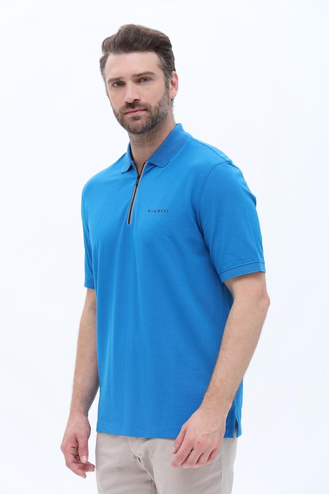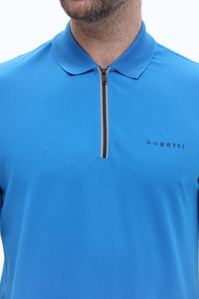 Поло имеет классический крой, короткие рукава и воротник с короткой молнией. Логотип бренда Bugatti вышит на груди. Эта модель идеально подойдет для создания повседневных образов, а также для занятий спортом или активного отдыха.