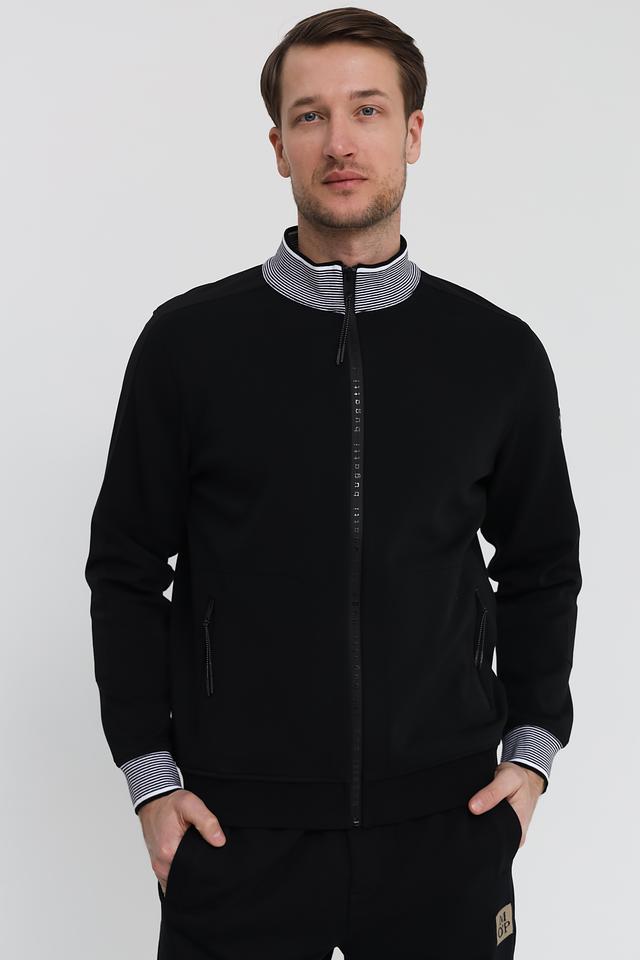 Чёрный кардиган Bugatti на молнии – стильное и комфортное решение для создания современного образа. Модель выполнена из мягкого трикотажа с добавлением хлопка, полиэстера и эластана, что обеспечивает удобную посадку и практичность. Состав: хлопок 76%, полиэстер 19%, эластан 5%