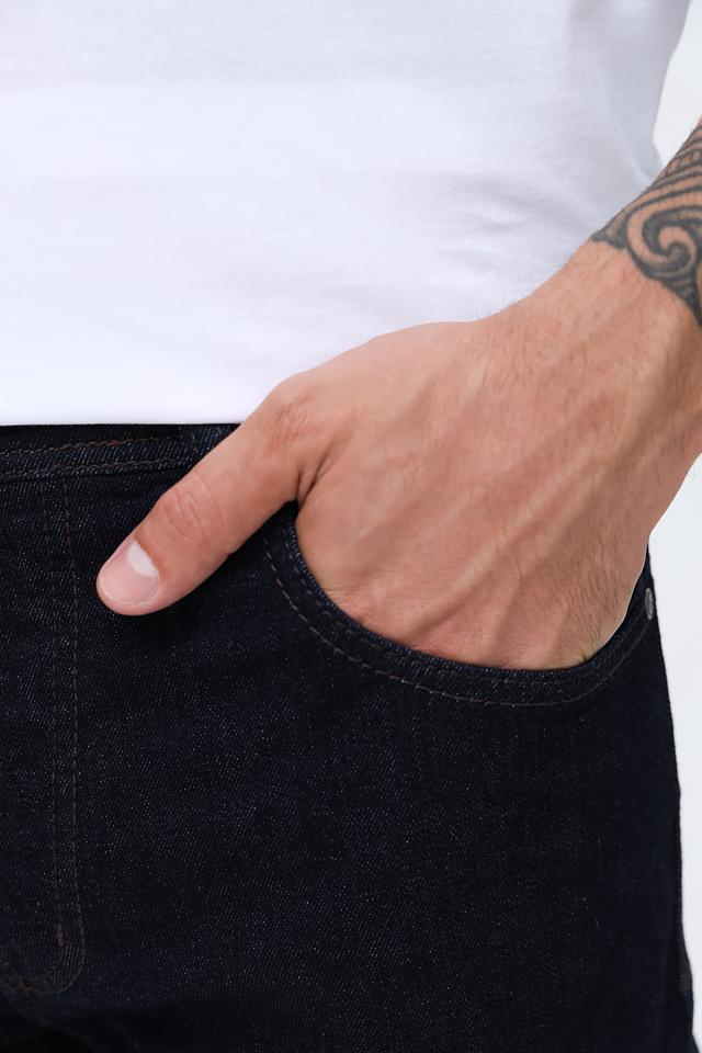 Джинсы имеют прямой крой, обеспечивающий комфортную посадку по фигуре. Ткань состоит из 98% хлопка и 2% эластана, что придает джинсам мягкость, эластичность и долговечность. Плотная джинсовая ткань обеспечивает износостойкость и сохраняет форму даже после многократных стирок.