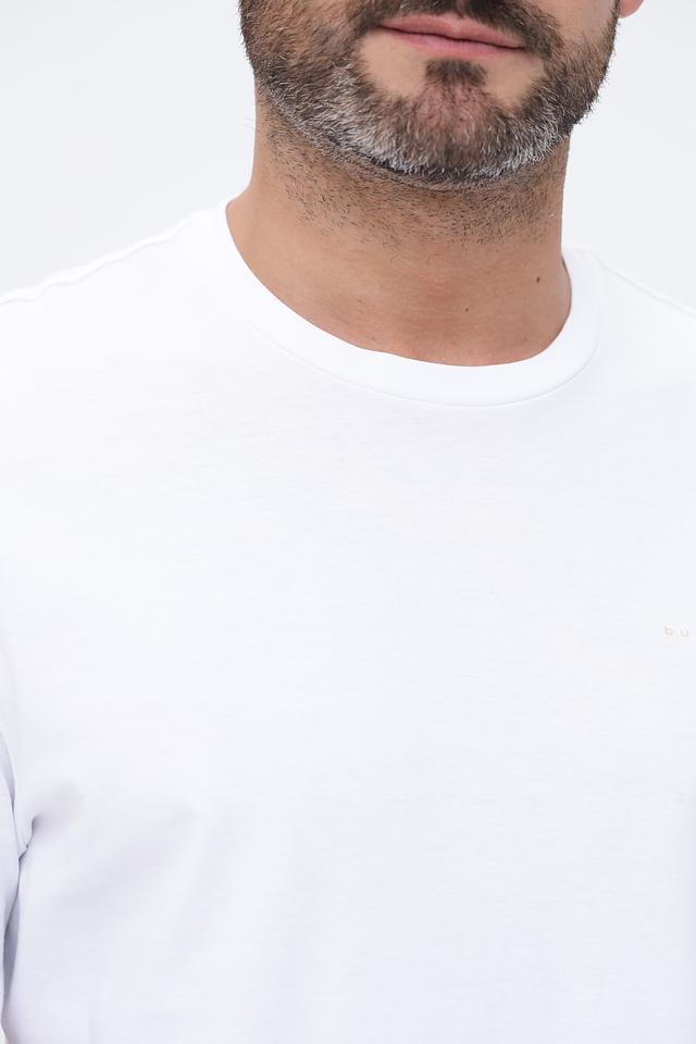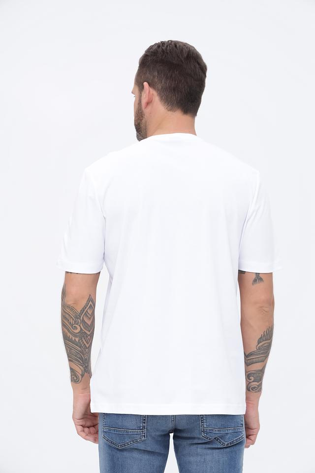 Футболка имеет однотонный белый цвет, который легко сочетается с любой одеждой. Минималистичный дизайн без ярких принтов и логотипов делает ее идеальным выбором для тех, кто ценит простоту и элегантность.