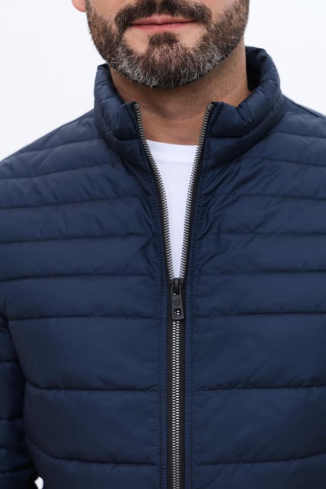 Мужская куртка Bugatti синего цвета – это стильная и практичная модель для прохладной погоды. Куртка выполнена в стеганом дизайне, имеет удобный воротник-стойку и застегивается на молнию. Состав: полиэстер 100%