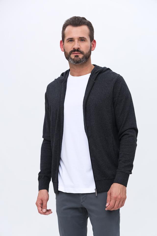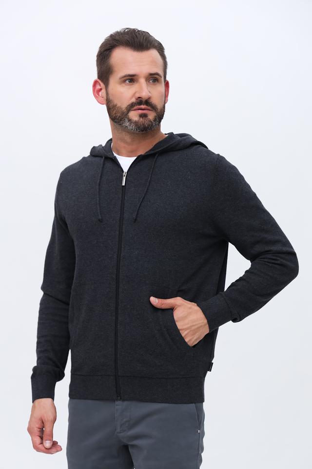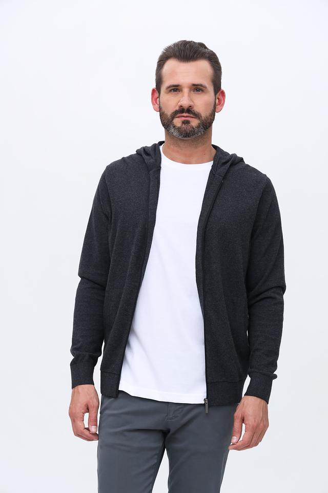 Мужской кардиган Bugatti графитового цвета на молнии с капюшоном. Изготовлен из мягкого хлопка с добавлением кашемира для комфорта и тепла. Идеальный выбор для создания стильного и удобного образа. Состав: хлопок 95%, кашемир 5%