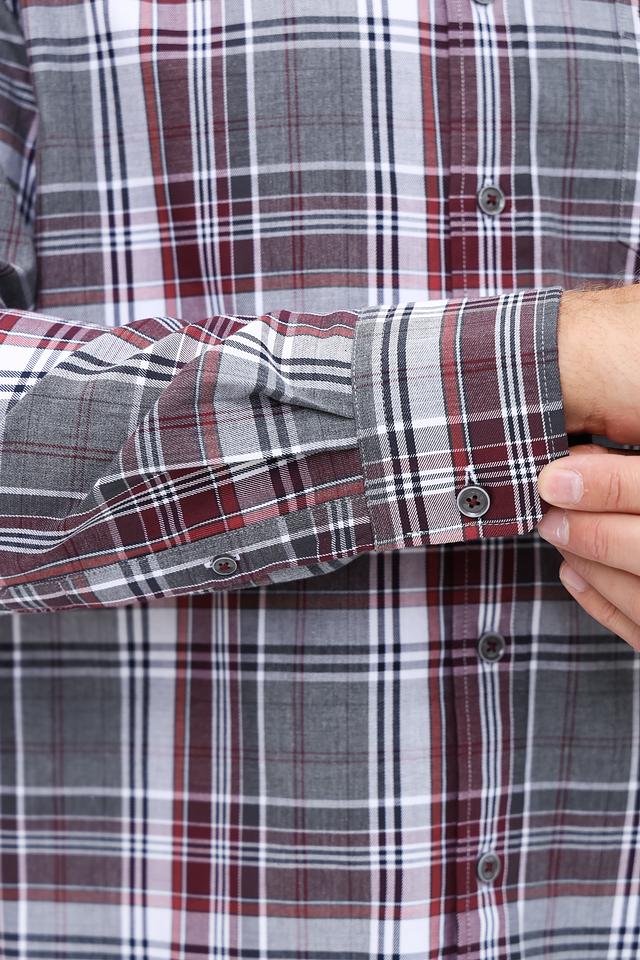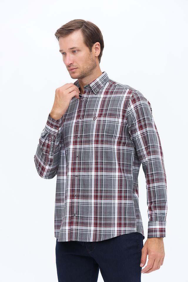 Эта рубашка Bugatti – идеальный выбор для мужчин, ценящих комфорт и стиль. Выполнена в классическом крое с длинными рукавами и традиционным воротником. Основной цвет рубашки – серый, дополненный клетчатым узором в бордовых, белых и серых тонах.