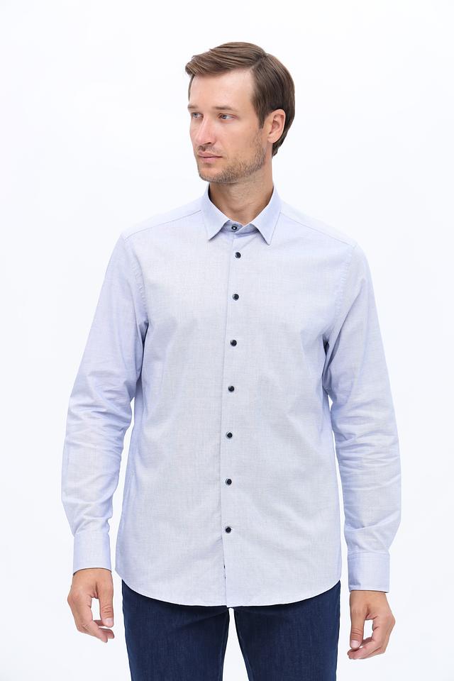Мужская рубашка Bugatti голубого цвета с длинным рукавом, выполнена из 100% хлопка. Классический крой и приталенный силуэт обеспечивают комфортную посадку и стильный внешний вид. Идеально подходит для создания как деловых, так и повседневных образов. Состав: хлопок 100%