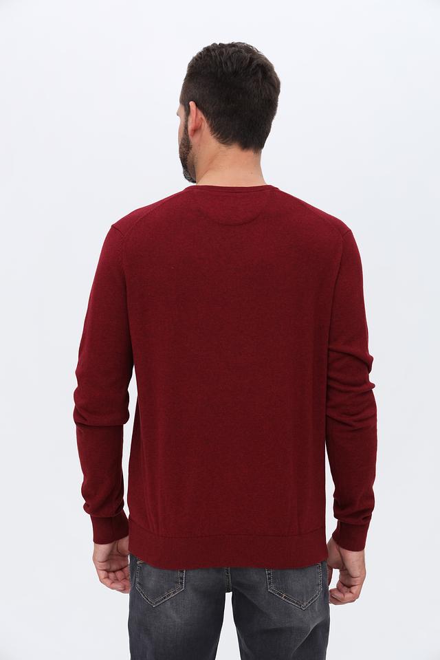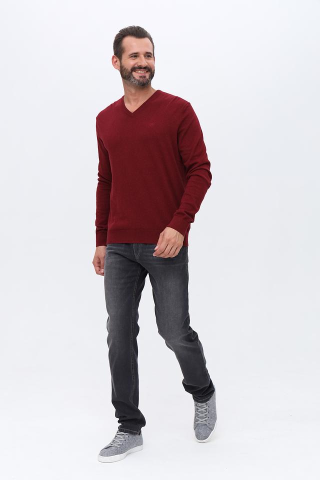 Мужской джемпер Bugatti бордового цвета с V-образным вырезом. Изготовлен из высококачественного хлопка с добавлением кашемира для мягкости и комфорта. Идеальный выбор для создания стильного и элегантного образа. Состав: хлопок 95%, кашемир 5%
