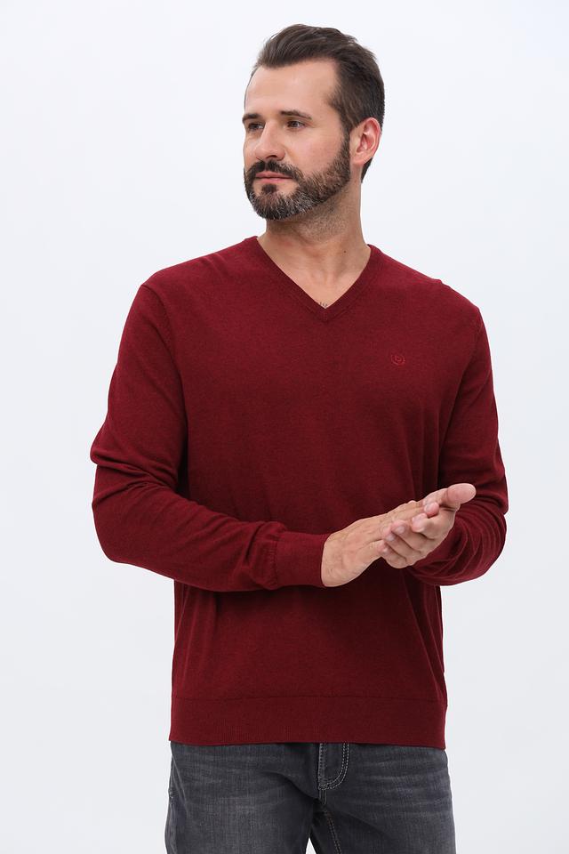 Джемпер Bugatti V-образный бордовый