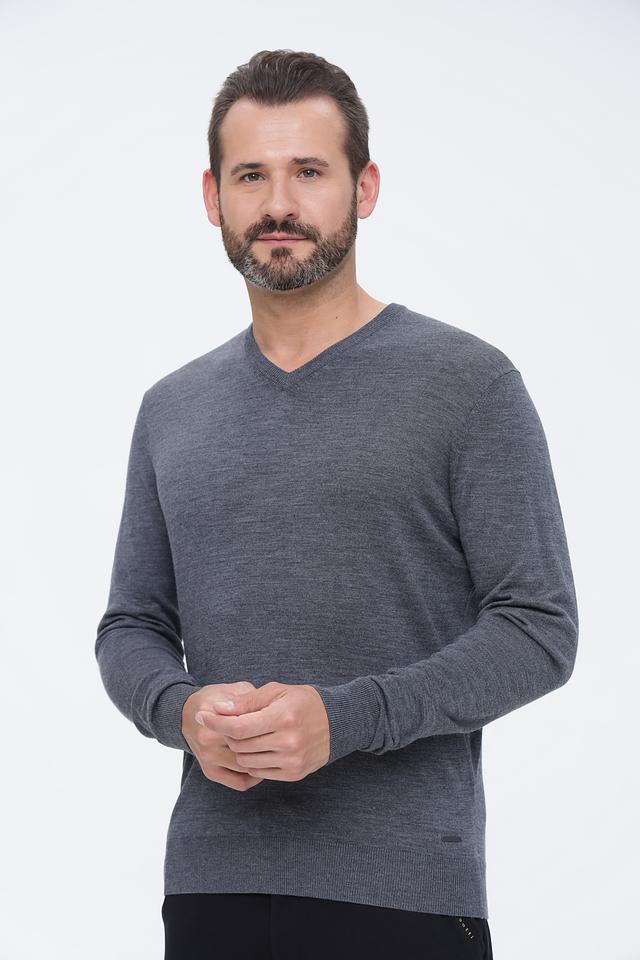 Модель имеет классический V-образный вырез, который подчеркивает линию шеи и делает образ более элегантным. Джемпер имеет длинные рукава и стандартную посадку, подходящую для большинства типов фигур.