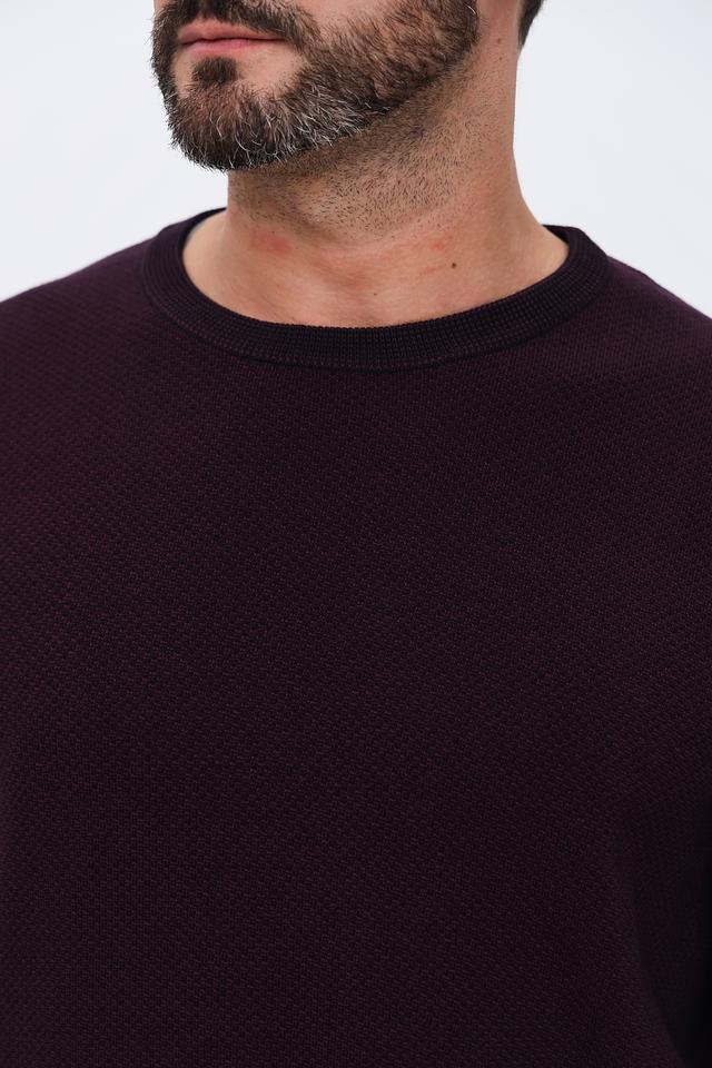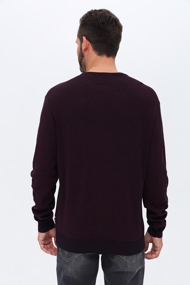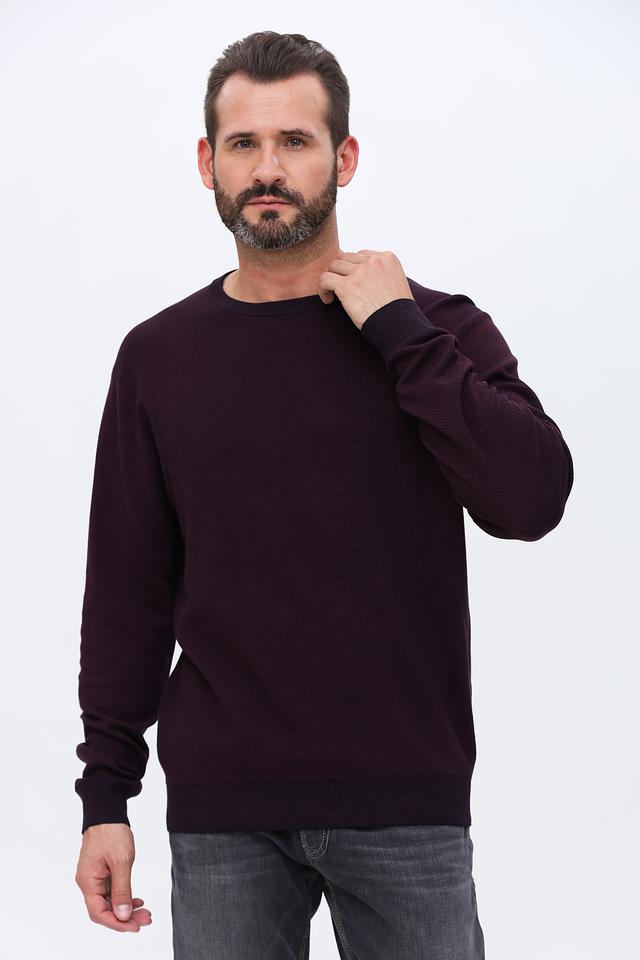 Мужской джемпер Bugatti бордового цвета с выраженной текстурой вязки. Изготовлен из сочетания шерсти и полиакрила, обеспечивая комфорт и тепло. Стильный и универсальный выбор для создания повседневных образов. Состав: шерсть 50%, полиакрил 50%