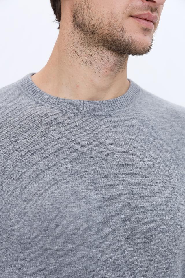 Мужской джемпер от Bugatti выполнен в сером меланжевом цвете, что делает его универсальным дополнением к любому образу. Модель имеет классический крой с круглым вырезом горловины и длинными рукавами.