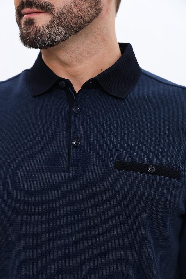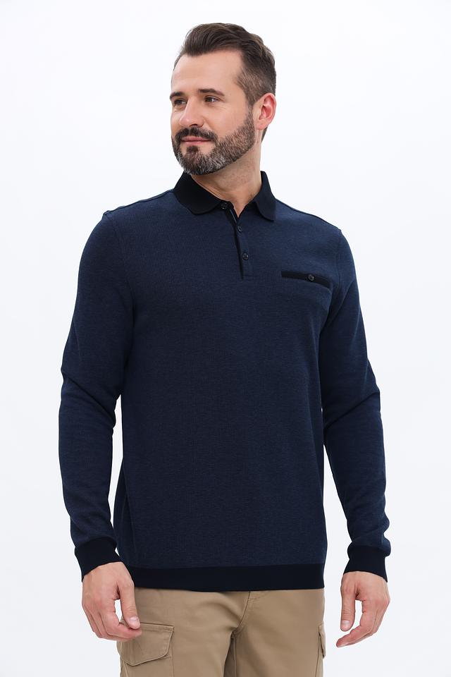 Мужское поло от Bugatti выполнено в темно-синем цвете и отличается стильным дизайном с длинным рукавом. Эта модель станет отличным дополнением к вашему повседневному гардеробу, сочетая в себе комфорт и элегантность.