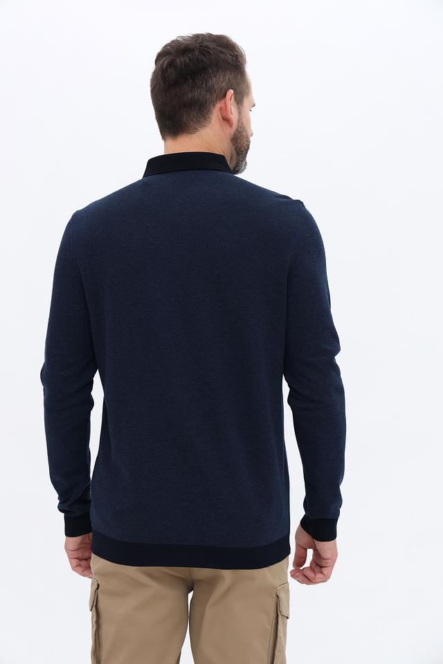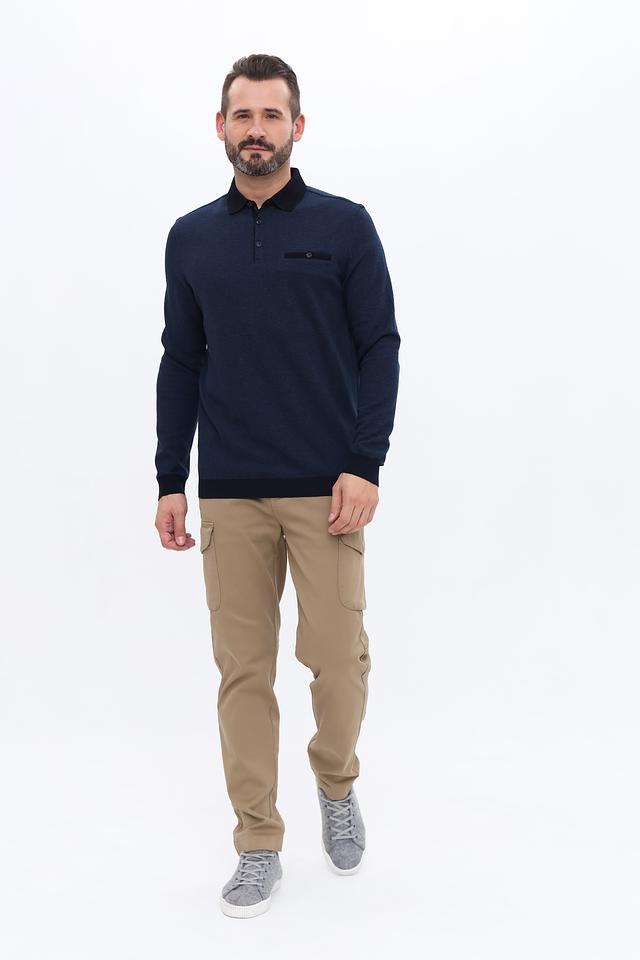 Мужское поло Bugatti темно-синего цвета с длинным рукавом и декоративными элементами. Изготовлено из сочетания полиэстера и хлопка, обеспечивающего комфорт и практичность. Стильное и универсальное решение для повседневного гардероба. Состав: полиэстер 70%, хлопок 30%