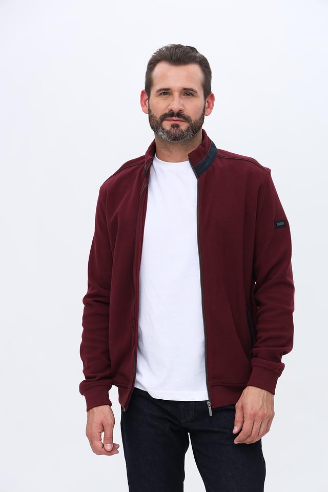 Мужской кардиган Bugatti бордового цвета на молнии – стильное и комфортное решение для повседневного гардероба. Модель выполнена из мягкого трикотажа с добавлением полиэстера, что обеспечивает удобство в носке и сохранение формы. Состав: хлопок 70%, полиэстер 30%