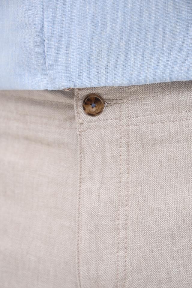 Шорты имеют классический крой и стандартную посадку, обеспечивая комфорт при носке. Изготовлены из высококачественного хлопка с добавлением льна и небольшого процента эластана, что делает их приятными на ощупь и обеспечивает хорошую воздухопроницаемость.