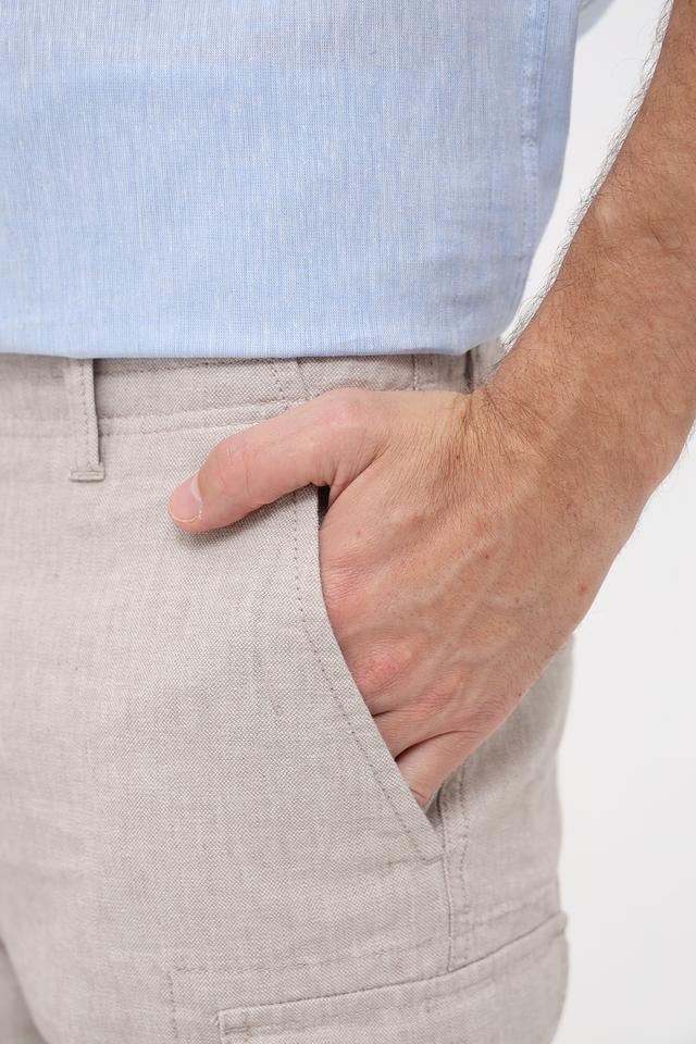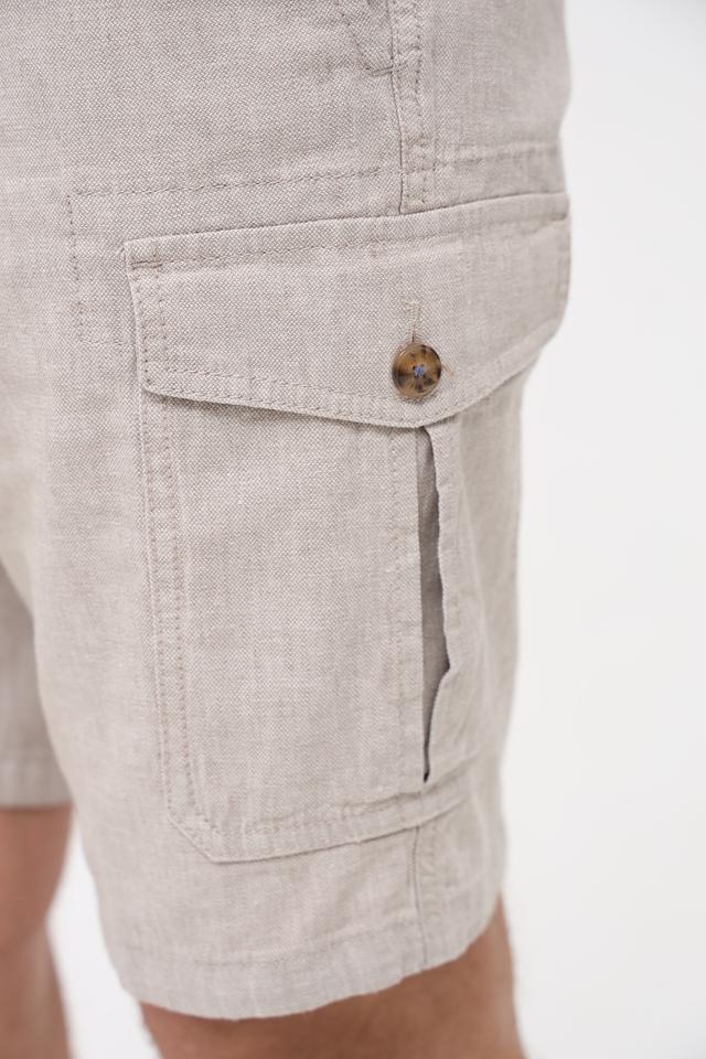 Дизайн шорт дополняют функциональные накладные карманы с клапанами, которые придают им практичный и стильный вид. Застежка на пуговицу и молнию обеспечивает надежную фиксацию. Состав ткани: 55% хлопок, 44% лен, 1% эластан.