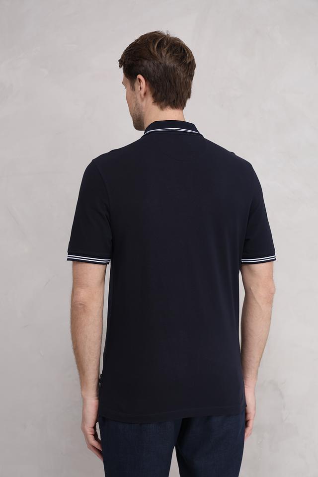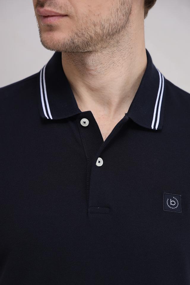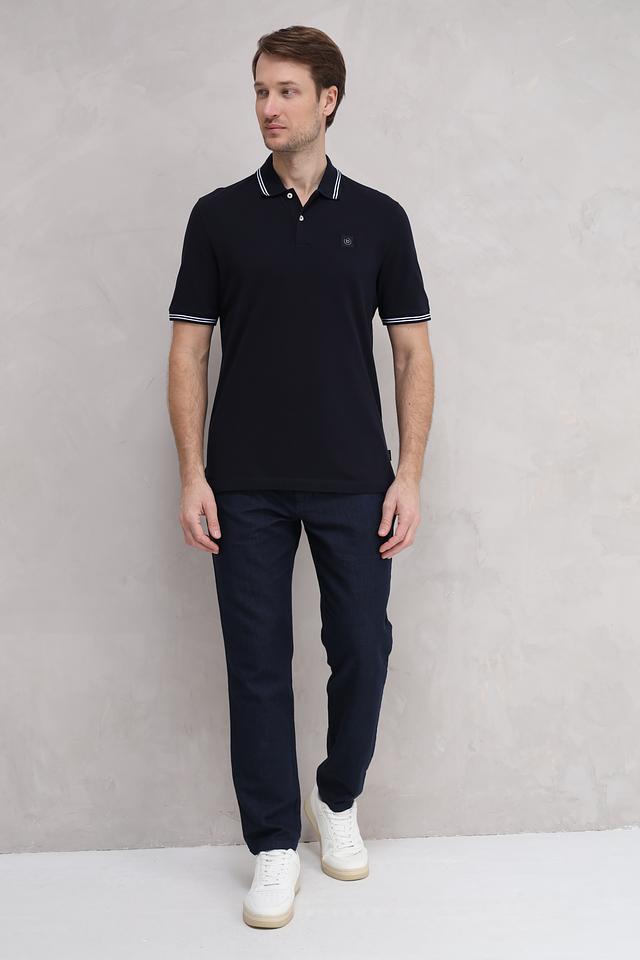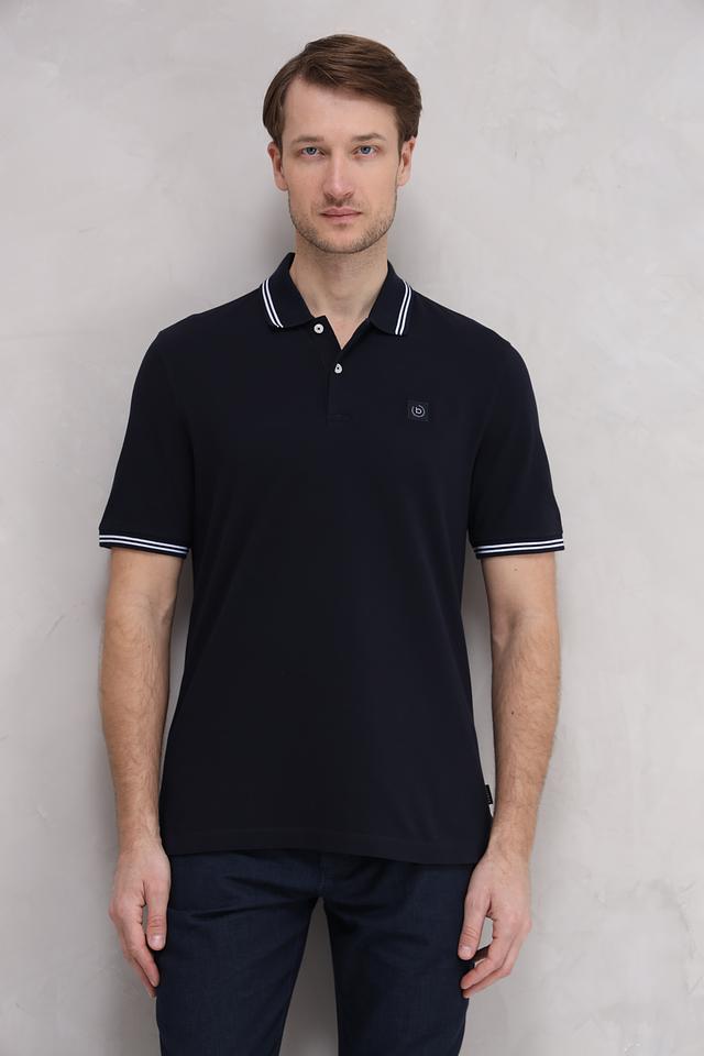 Мужское поло Bugatti тёмно-синего цвета с белой полоской на воротнике и рукавах. Классический крой и 100% хлопковый состав обеспечивают комфорт и удобство в носке. Состав: хлопок 100%