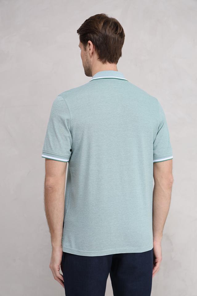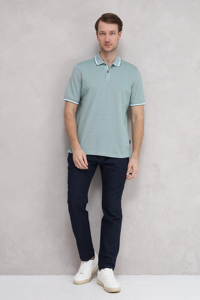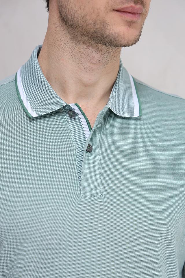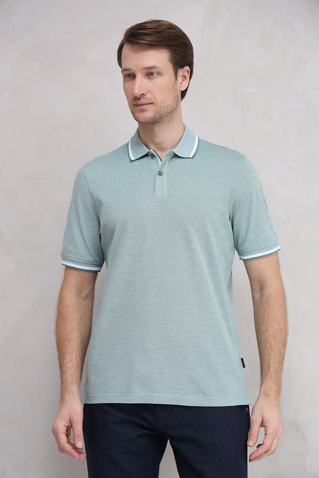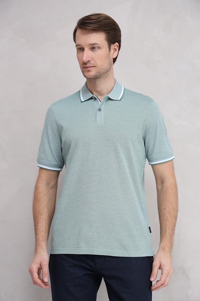 Мужское поло Bugatti мятного цвета с белой отделкой на воротнике и рукавах. Изготовлено из 100% хлопка, обеспечивающего комфорт и воздухопроницаемость. Стильный и универсальный вариант для повседневного гардероба. Состав: хлопок 100%