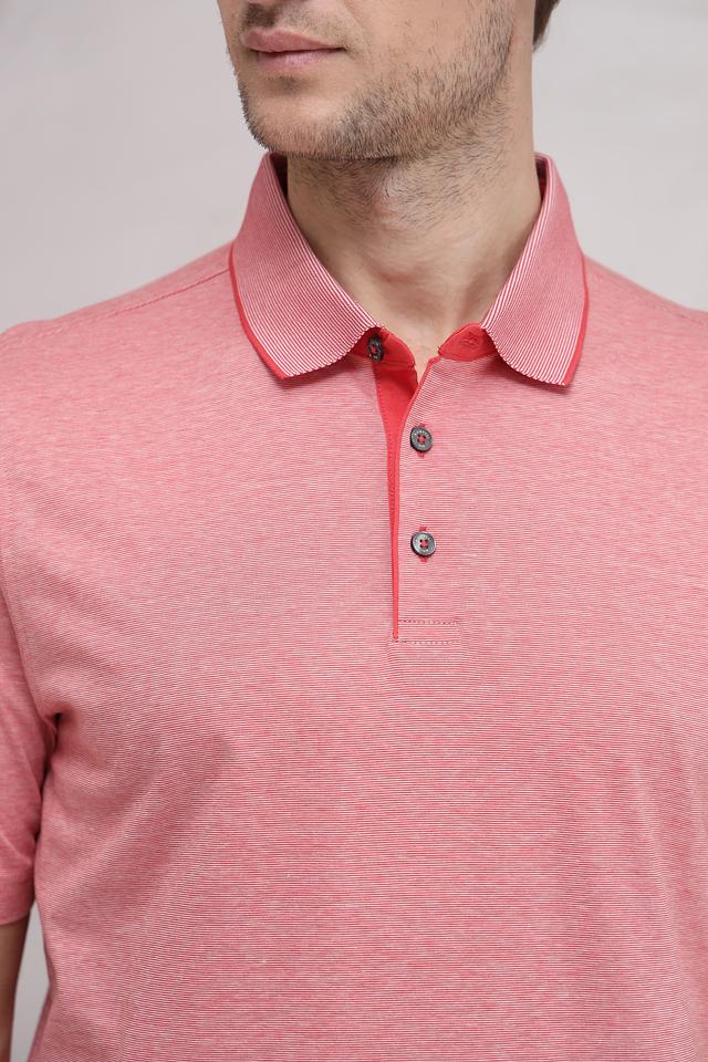 Особенностью данной модели является воротник и планка с пуговицами, выполненные в контрастном красном цвете, что придает поло индивидуальность и стиль. Ткань поло состоит из 100% хлопка, что обеспечивает комфорт и воздухопроницаемость.