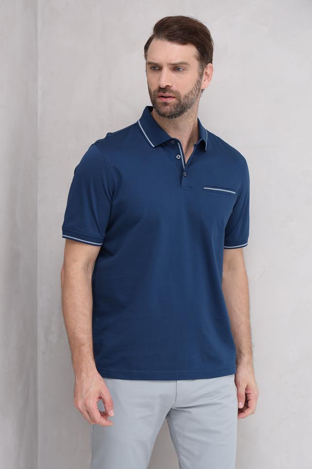 Мужское поло Bugatti синего цвета с контрастной белой отделкой на воротнике и рукавах. Классический крой и 100% хлопковый состав обеспечивают комфорт и удобство в носке. Состав: хлопок 100%