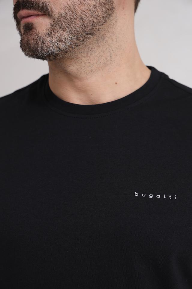 Футболка имеет прямой крой, круглый вырез горловины и короткие рукава. На груди расположен небольшой логотип бренда Bugatti, выполненный в тон изделия. Эта деталь придает футболке элегантный и сдержанный вид.