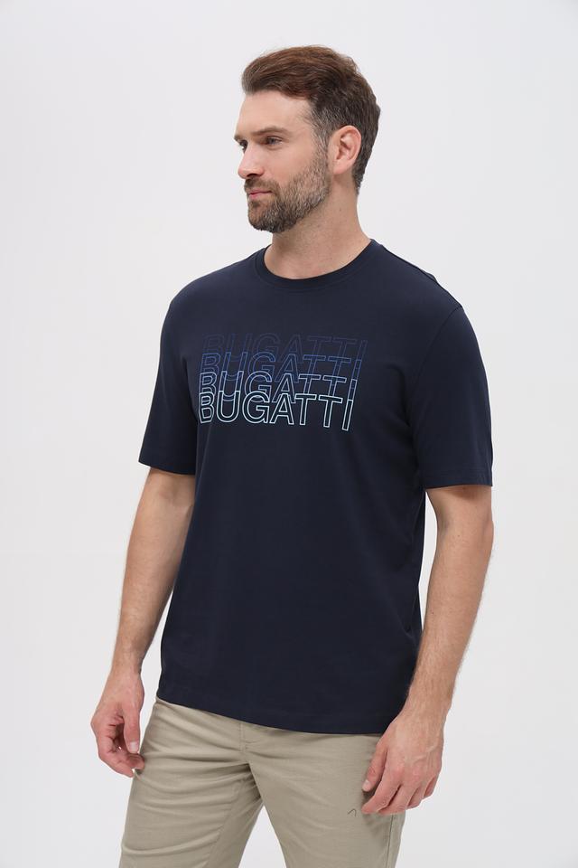 Мужская футболка Bugatti темно-синего цвета с логотипом бренда. Изготовлена из 100% хлопка, обеспечивающего комфорт и воздухопроницаемость. Стильный и лаконичный дизайн делает эту футболку отличным выбором для повседневной носки. Состав: хлопок 100%