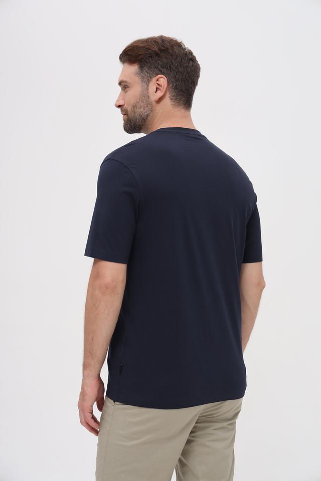 Мужская футболка Bugatti классического кроя, выполненная в темно-синем цвете. Модель изготовлена из высококачественного 100% хлопка, что обеспечивает максимальный комфорт при носке и приятные тактильные ощущения.