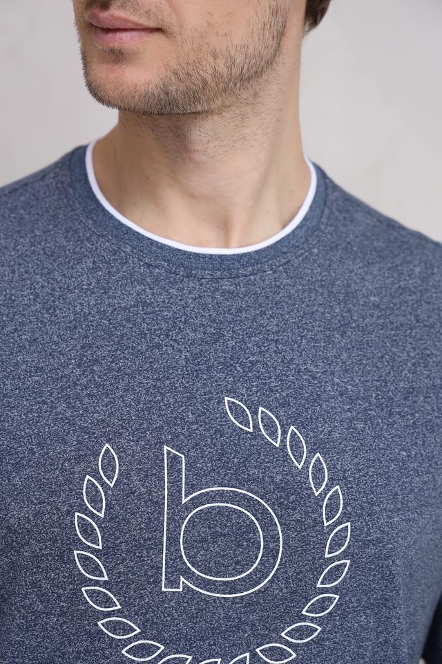 Мужская футболка Bugatti серого меланжа с круглым вырезом и белым логотипом на груди. Изготовлена из 100% хлопка, обеспечивающего комфорт и воздухопроницаемость. Состав: хлопок 100%