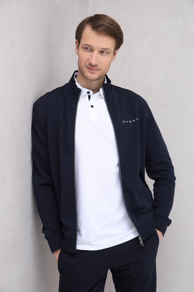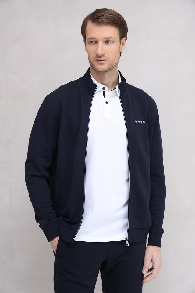 Мужской кардиган Bugatti тёмно-синего цвета – это стильная и удобная модель на молнии. Изготовлен из хлопка с добавлением полиэстера, что обеспечивает комфорт и практичность. Идеально подходит для создания повседневных образов. Состав: хлопок 87%, полиэстер 13%