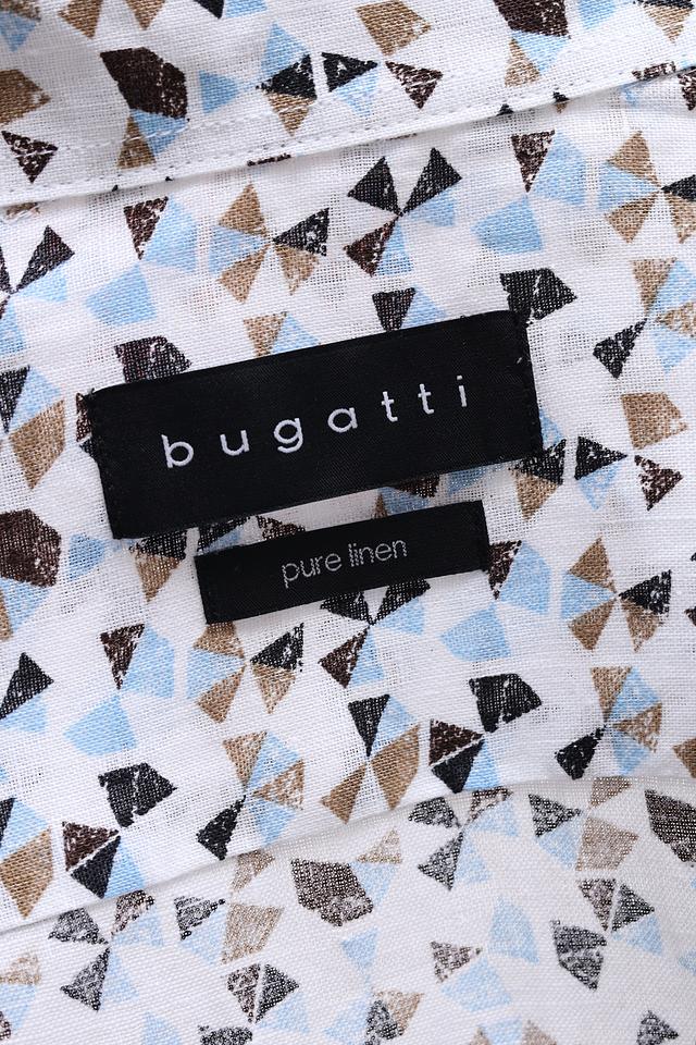 Мужская рубашка Bugatti голубого цвета с оригинальным цветочным принтом. Изготовлена из 100% льна, что обеспечивает комфорт и воздухопроницаемость в жаркую погоду. Идеальный выбор для создания стильного и лёгкого образа. Состав: лен 100%