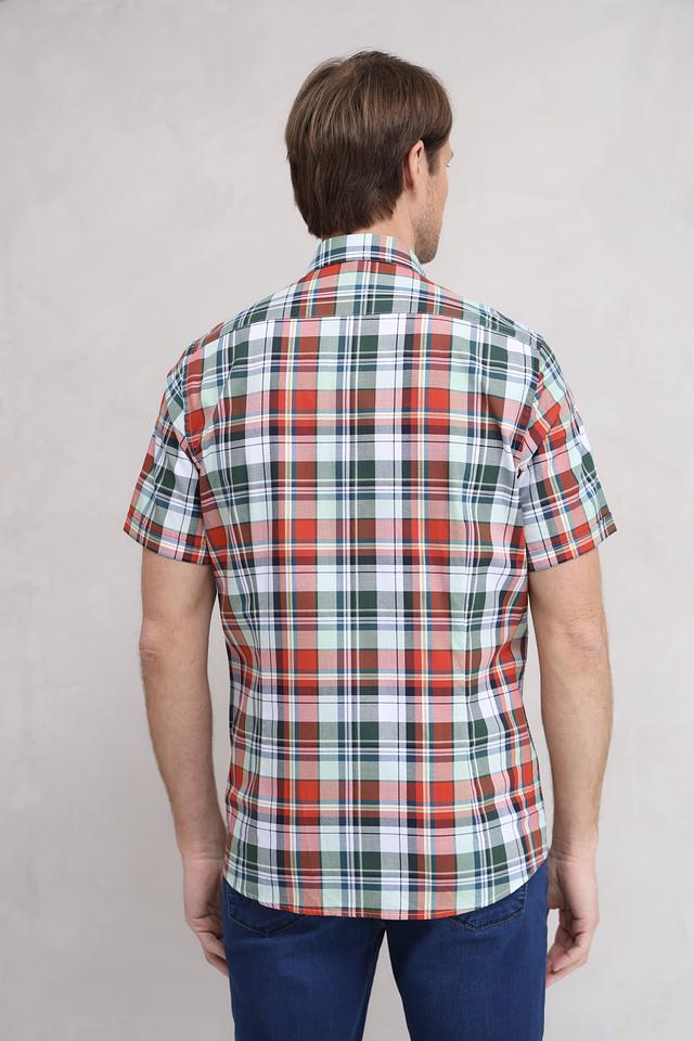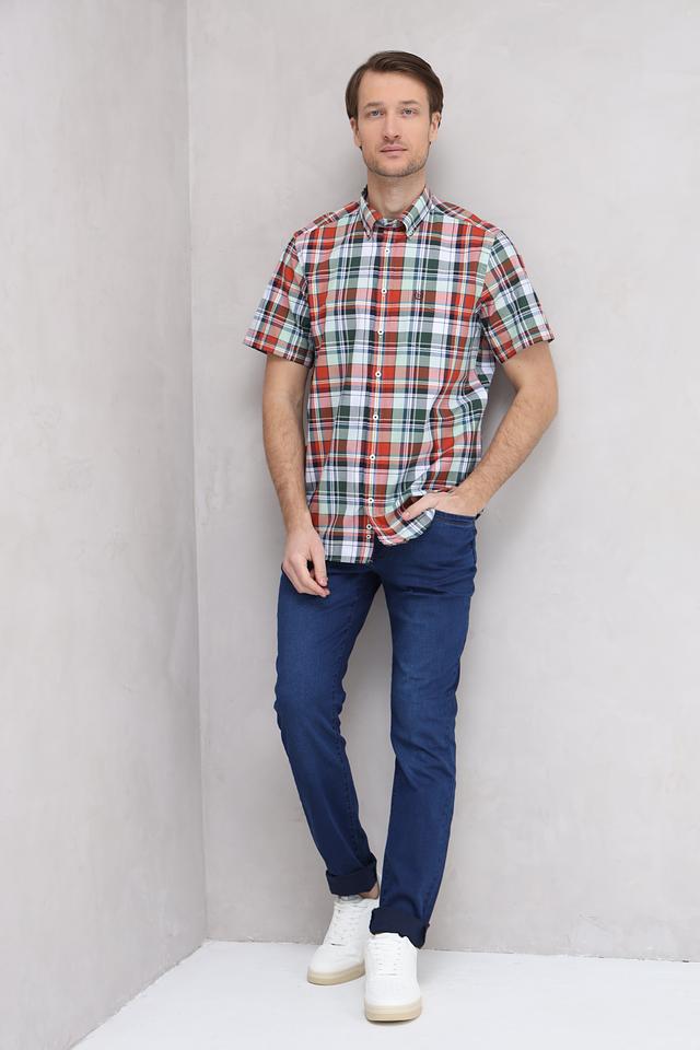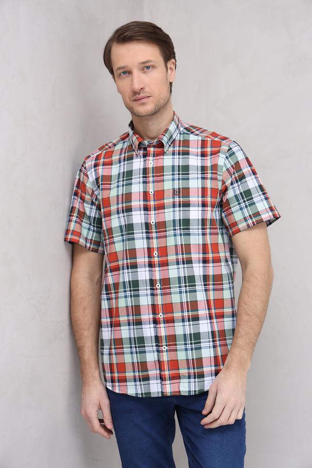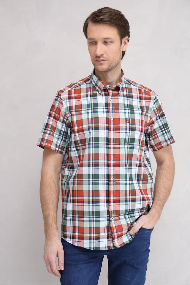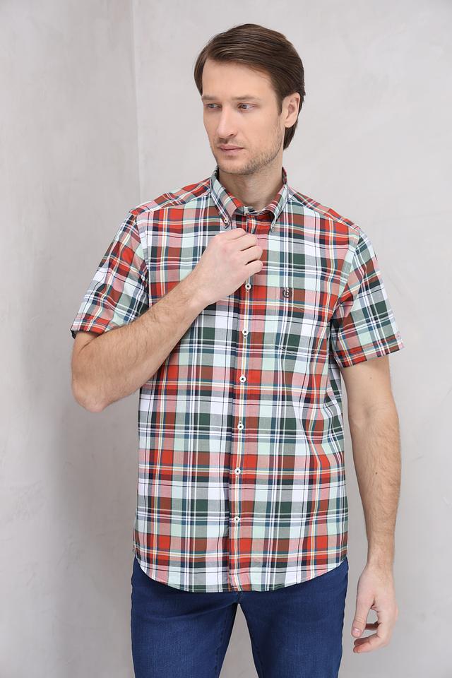 Мужская рубашка Bugatti с коротким рукавом выполнена в классической клетке красных, зелёных и белых оттенков. Изготовлена из 100% хлопка, обеспечивающего комфорт и воздухопроницаемость. Состав: хлопок 100%
