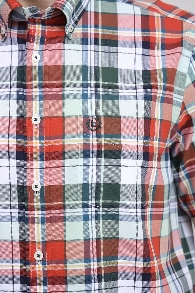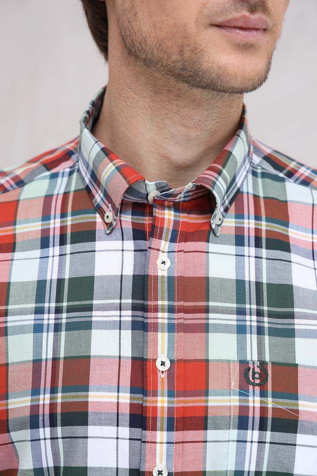 Мужская рубашка Bugatti с коротким рукавом – это стильное и практичное решение для повседневного гардероба. Модель выполнена в яркой клетке, сочетающей в себе красный, зелёный и белый цвета, что придает ей свежий и динамичный вид.