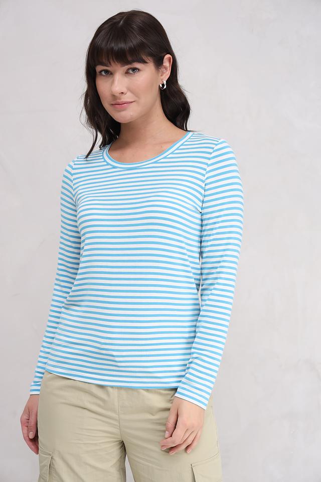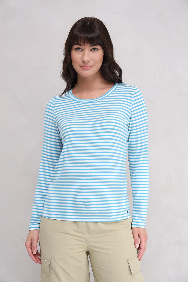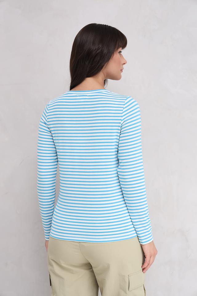 Этот женский лонгслив от Bugatti выполнен в классическом крое с длинными рукавами и круглым вырезом горловины. Основной цвет изделия – голубой, дополненный белоснежной полоской, создающей свежий и легкий образ.