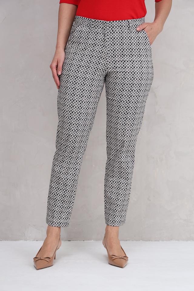 Женские брюки Bugatti серого цвета с оригинальным принтом в клетку. Изготовлены из хлопка с добавлением эластана для комфорта и лучшей посадки. Состав: хлопок 97%, эластан 3%