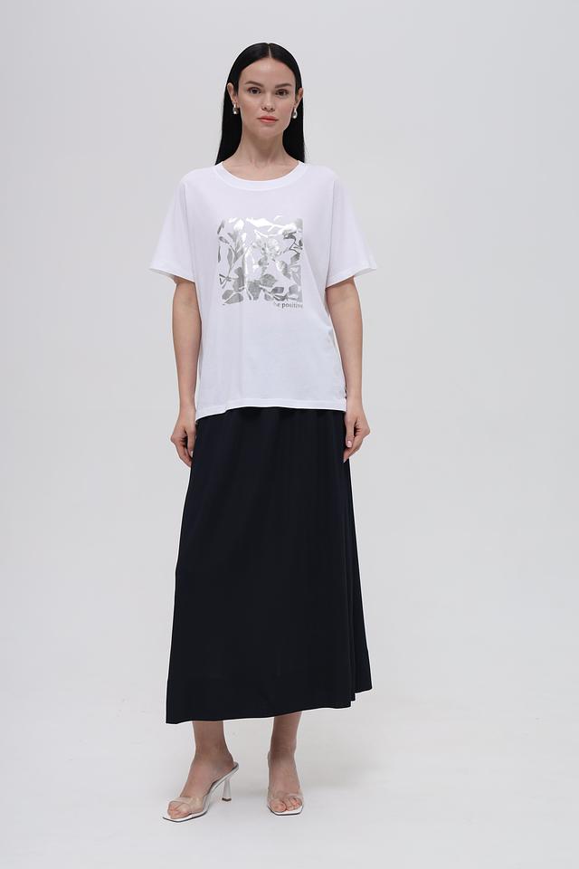 Футболка имеет свободный крой, который обеспечивает комфорт и свободу движений. Округлый вырез горловины и короткие рукава делают ее идеальным выбором для теплой погоды.