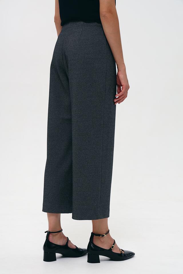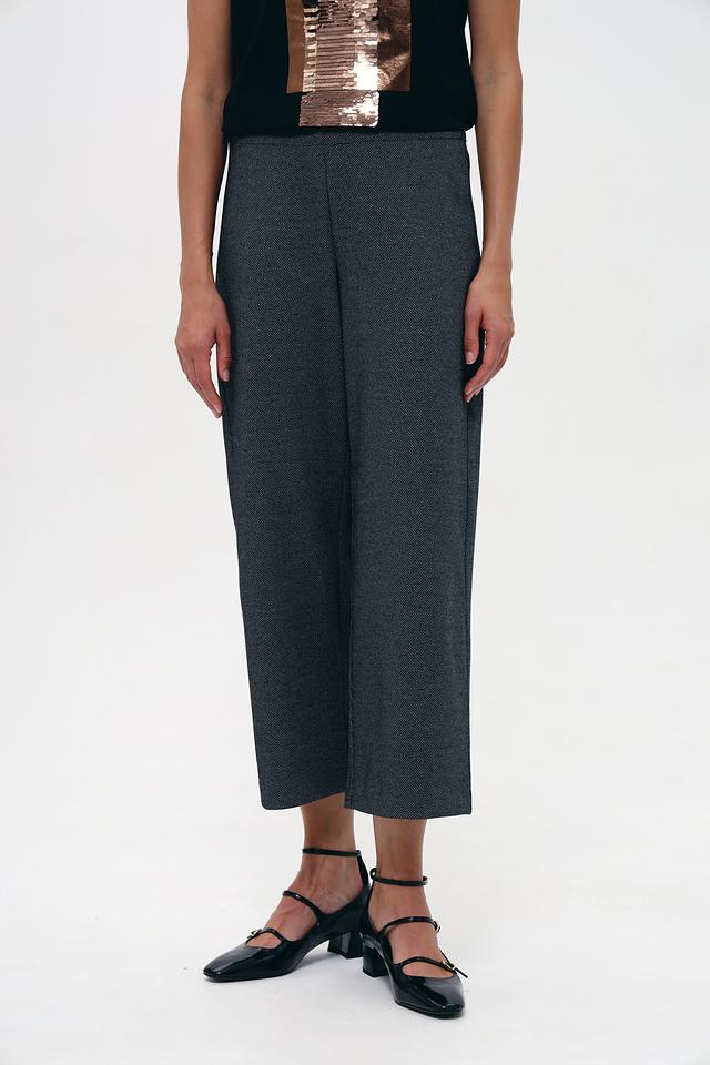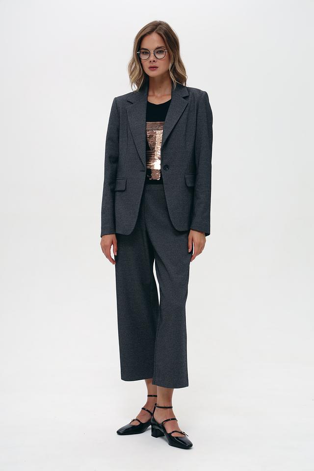 Брюки имеют прямой крой и укороченную длину, что делает их актуальными и стильными. Ткань с мелким рисунком придает изделию изысканность. Эластан в составе обеспечивает комфортную посадку по фигуре и свободу движений.