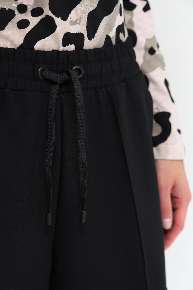 Брюки имеют прямой крой и стандартную посадку по фигуре. Отличительной особенностью являются функциональные боковые карманы-патрубки, добавляющие образу динамичности. Застежка на молнию и пуговицу, а также эластичный пояс с кулиской обеспечивают удобную и надежную фиксацию.