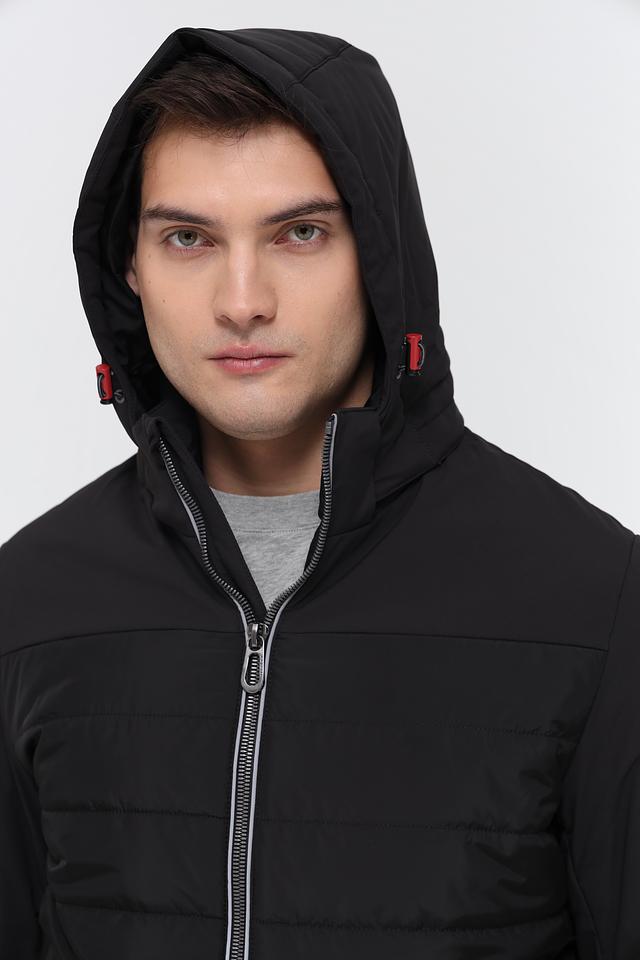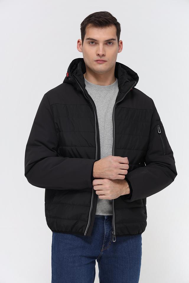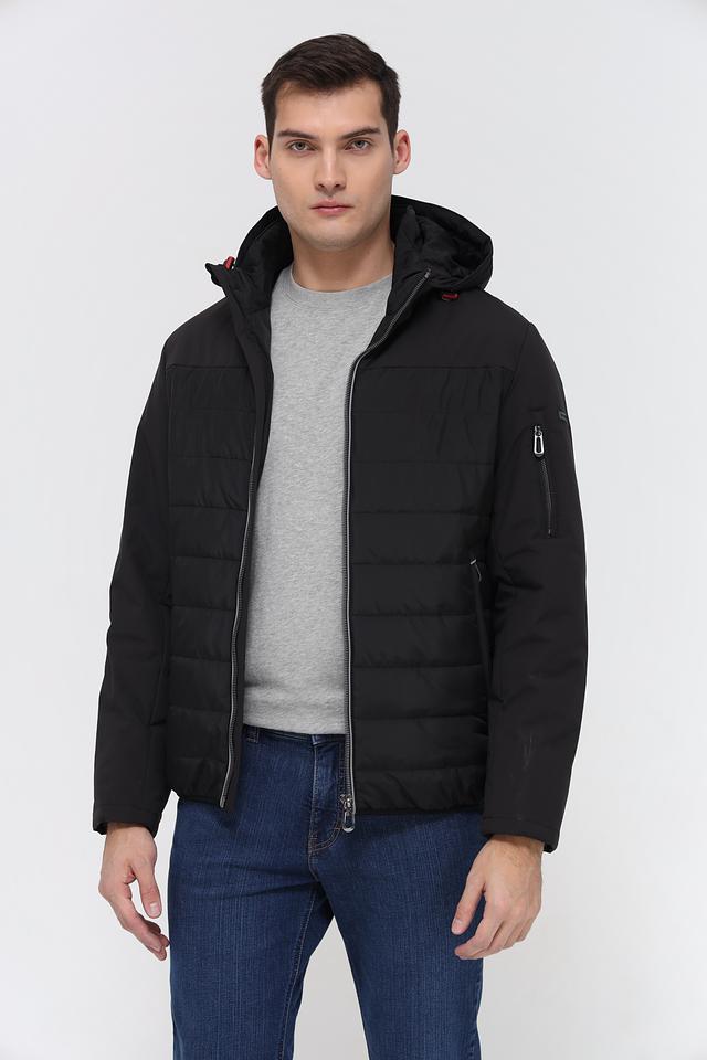 Чёрная куртка Bugatti из 100% полиэстера – стильное и практичное решение для прохладной погоды. Модель с капюшоном и стеганой фактурой обеспечит комфорт и защиту от ветра. Состав: полиэстер 100%