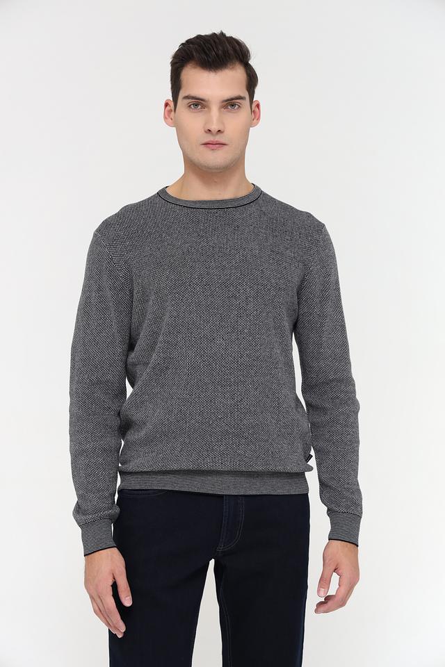 Мужской джемпер Bugatti серого цвета с оригинальным меланжевым узором и рифлёной отделкой. Изготовлен из мягкого и приятного к телу сочетания хлопка и полиакрила, обеспечивающего комфорт и долговечность. Состав: хлопок 55%, полиакрил 45%