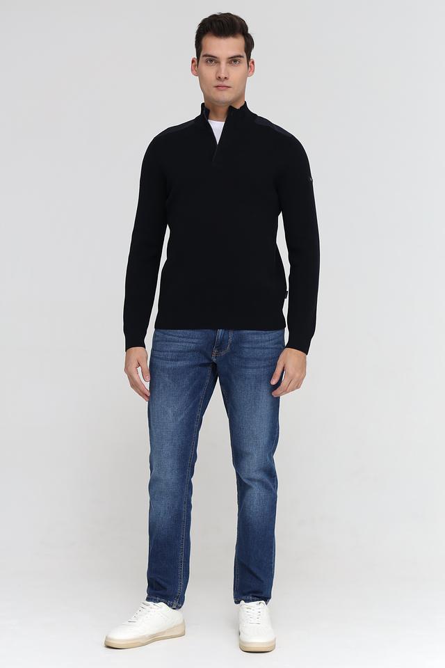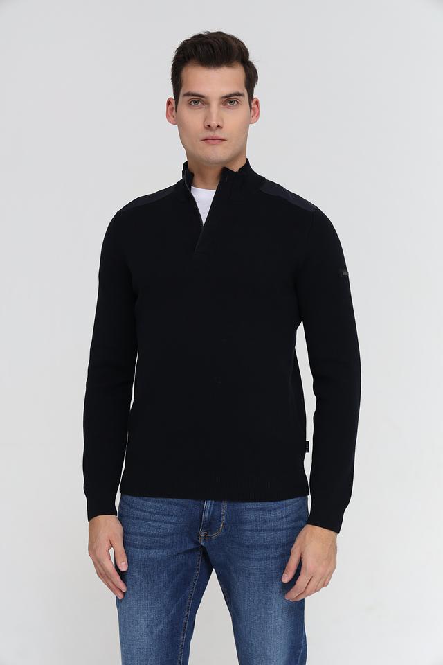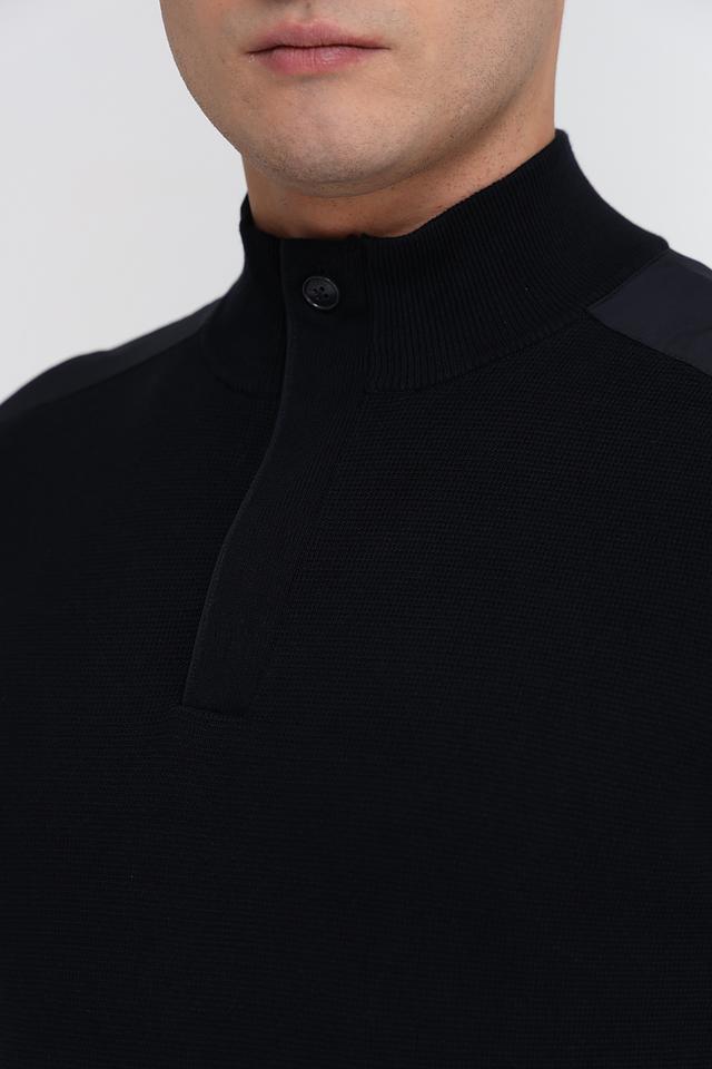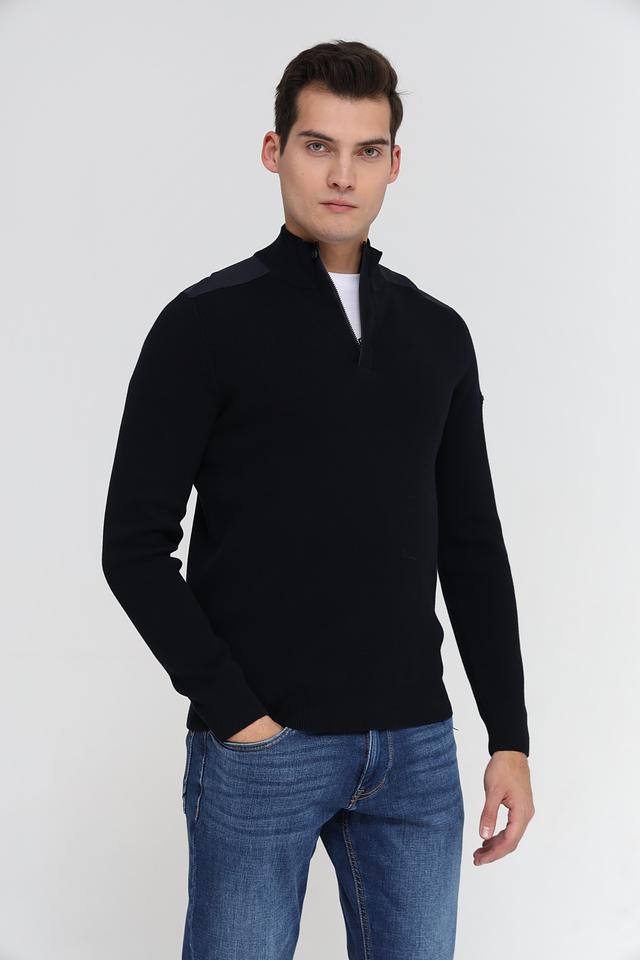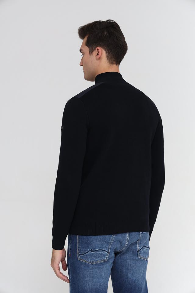 Мужской джемпер Bugatti черного цвета с воротником на молнии и декоративной вставкой. Изготовлен из 100% хлопка, обеспечивающего комфорт и удобство в носке. Состав: хлопок 100%