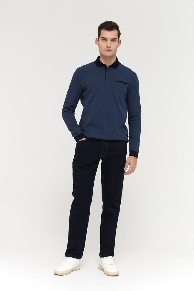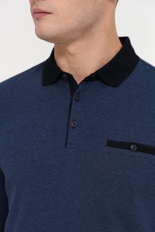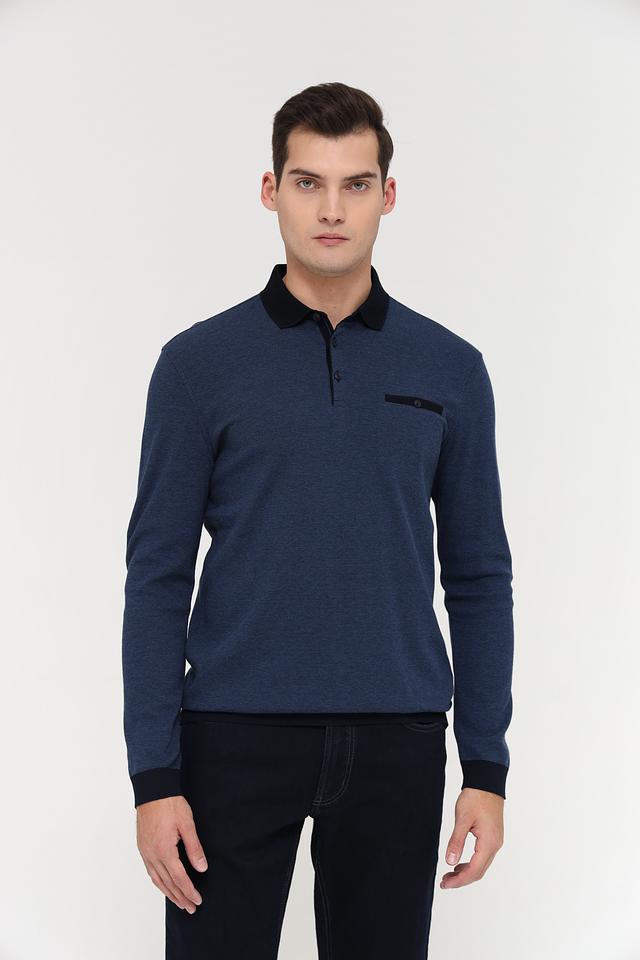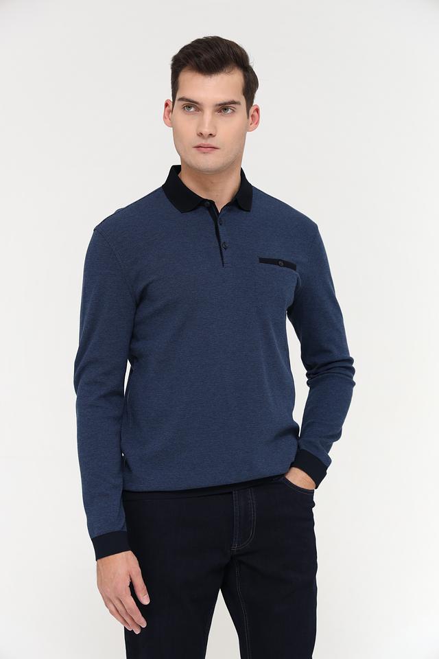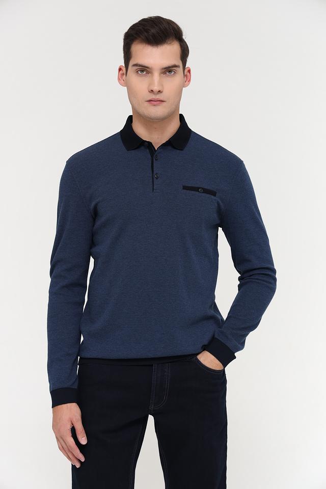 Мужское поло Bugatti синего цвета с длинным рукавом и черной отделкой воротника и манжет. Стильная модель из смесового хлопка, сочетающая комфорт и элегантный внешний вид. Состав: полиэстер 55%, хлопок 45%