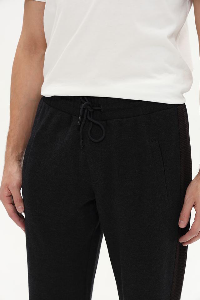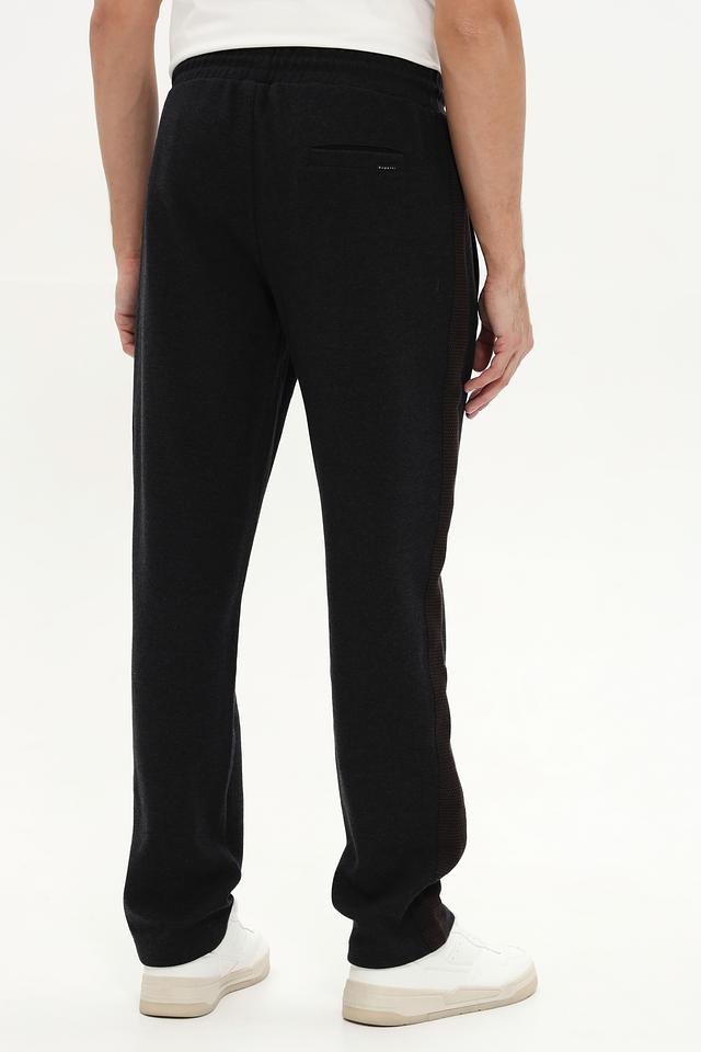 Брюки имеют прямой крой, обеспечивающий свободу движений. Эластичный пояс с регулируемым шнурком гарантирует идеальную посадку по фигуре. По бокам брюк расположены декоративные полосы, добавляющие динамичности образу.